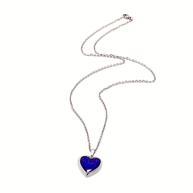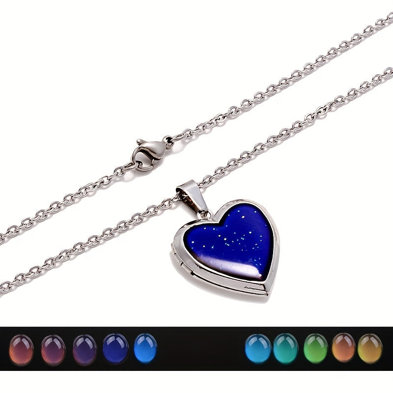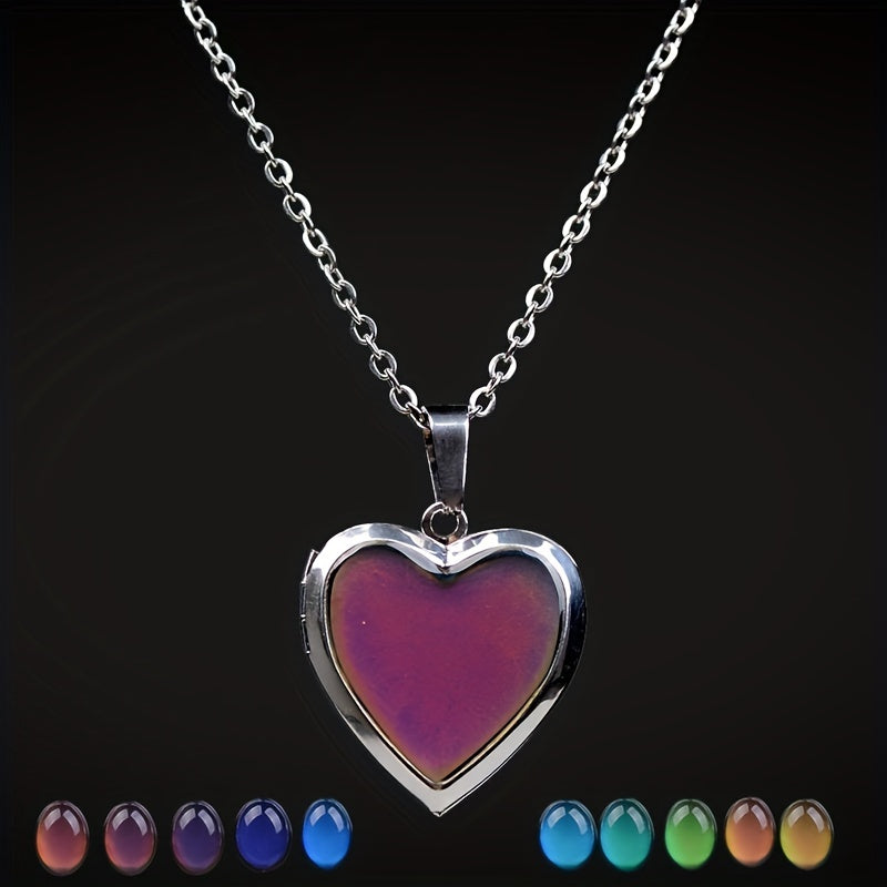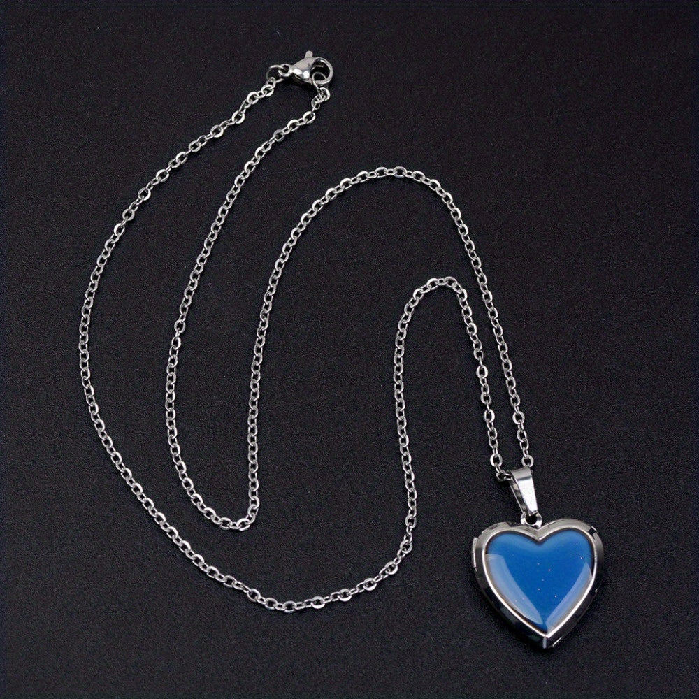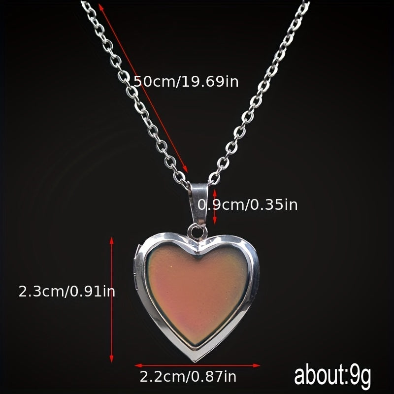 This heart-shaped photo pendant mood necklace features emotion-changing locket technology. Perfect for holding a special photo close to your heart. Makes a great gift for men and women.