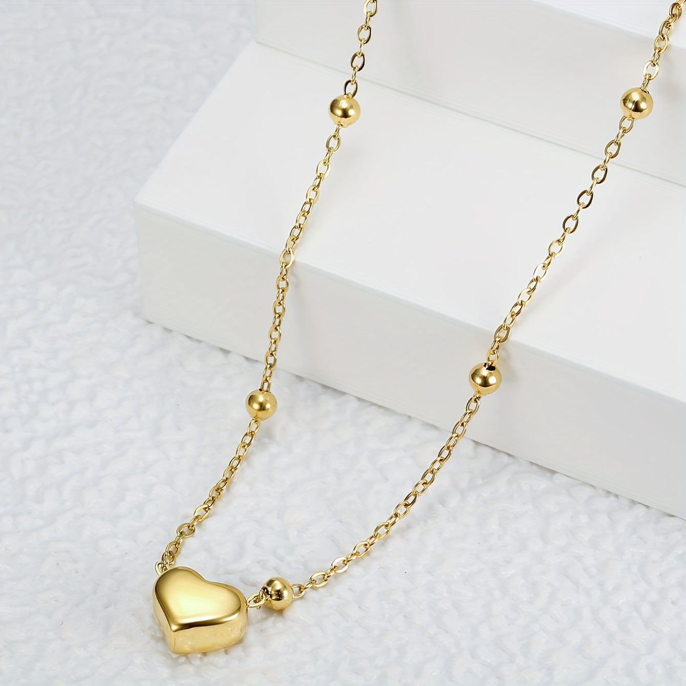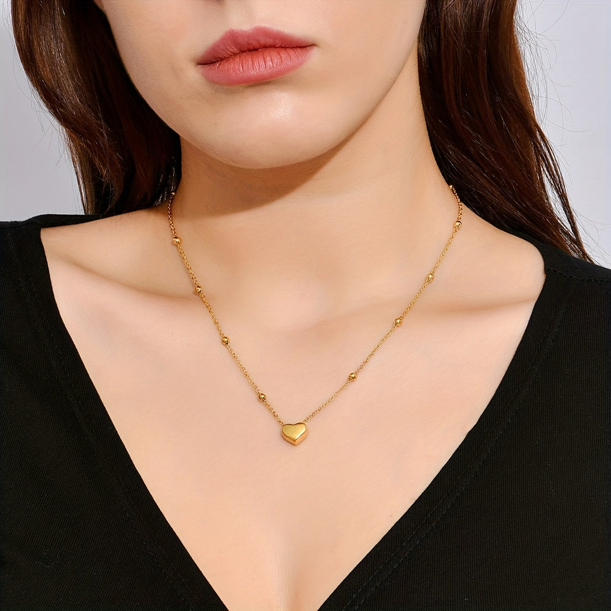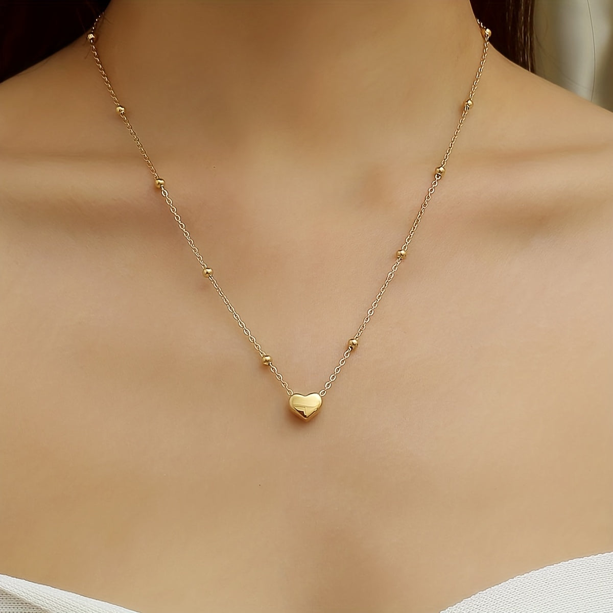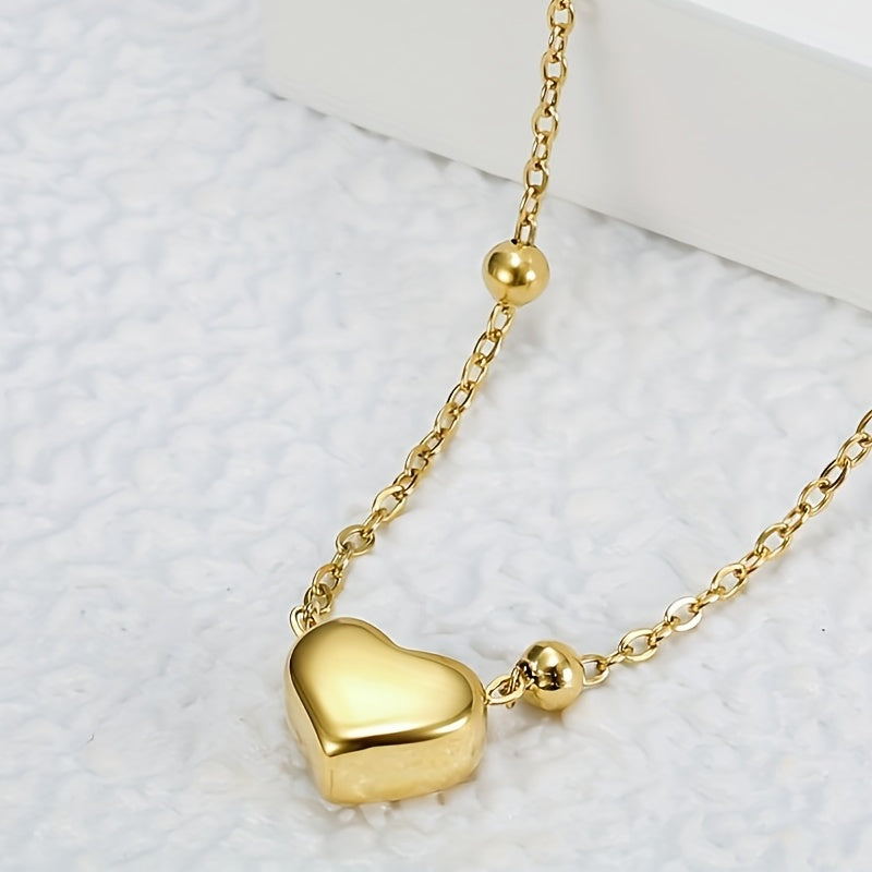 Heart-Shaped Bead Chain Pendant Necklace for Women