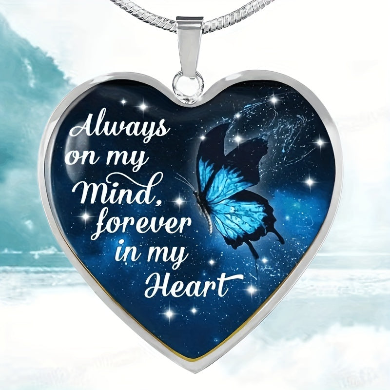 This stunning heart shaped pendant necklace features a beautiful butterfly pattern, making it an ideal gift for anniversaries, Christmas, birthdays, and other special occasions.