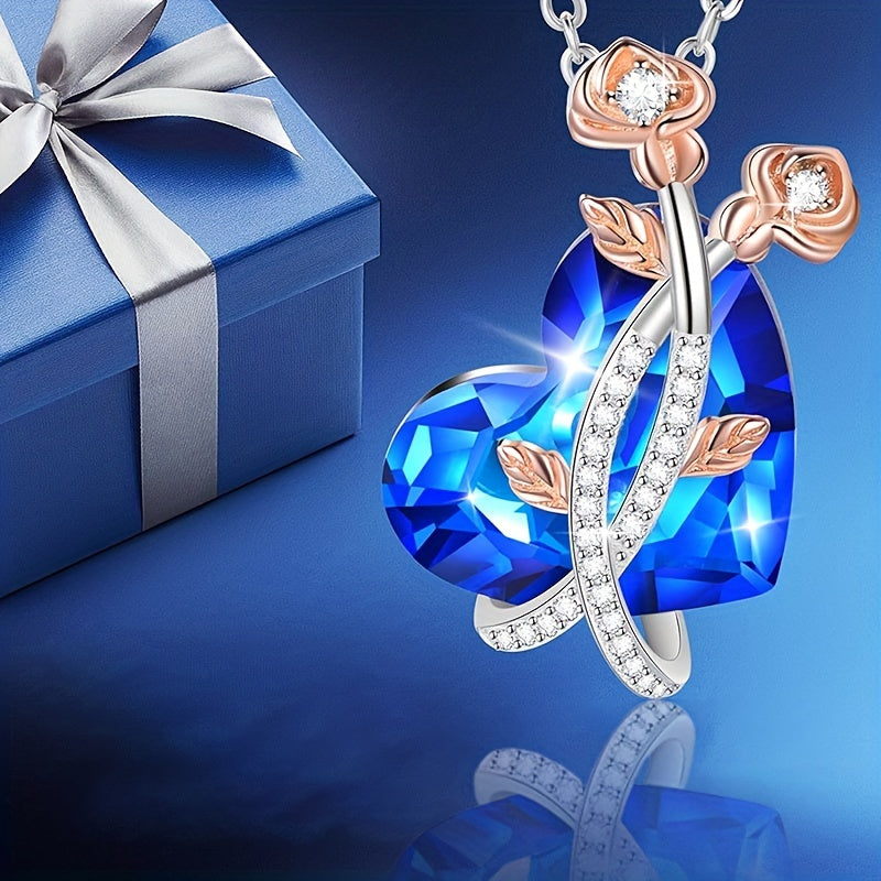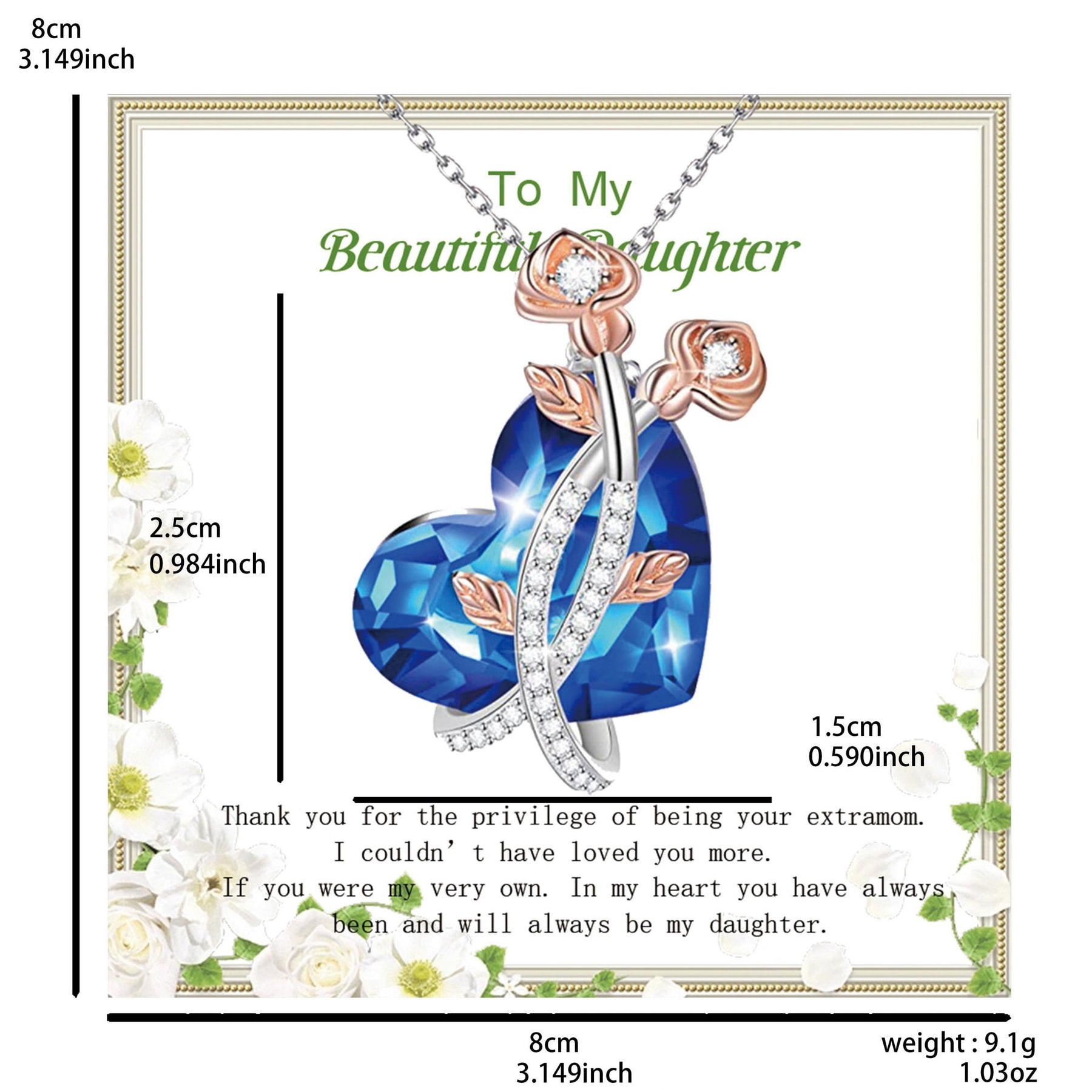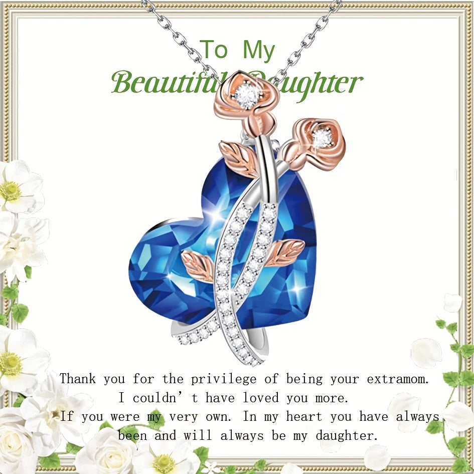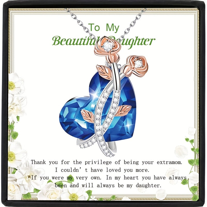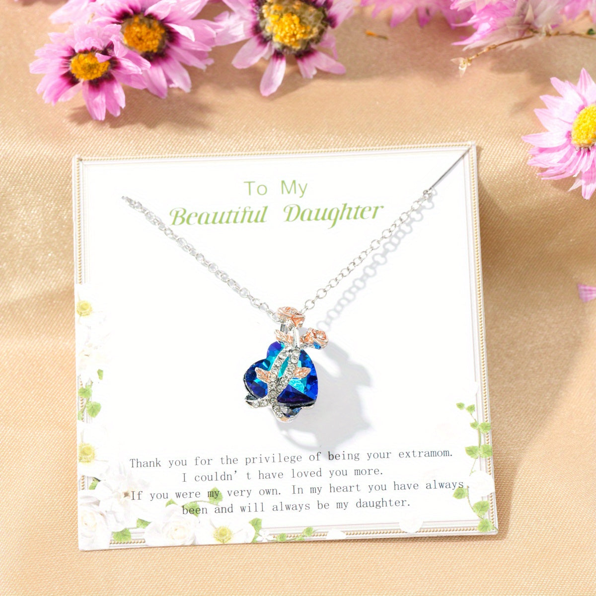 This beautiful heart shaped necklace is the perfect gift for your daughter. It features a crystal pendant and comes with a blessing card.