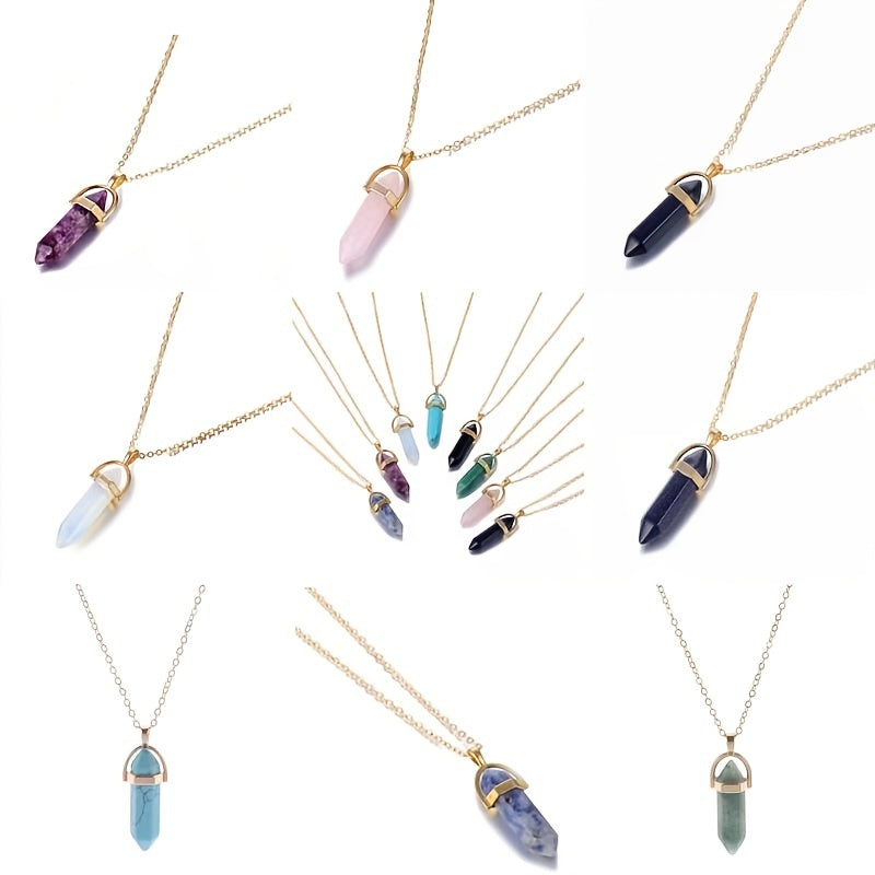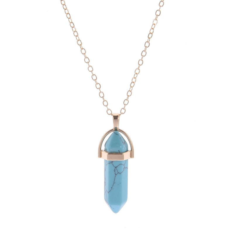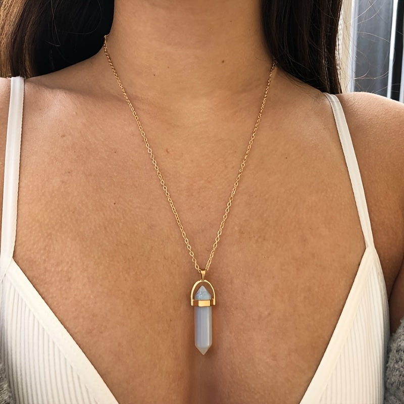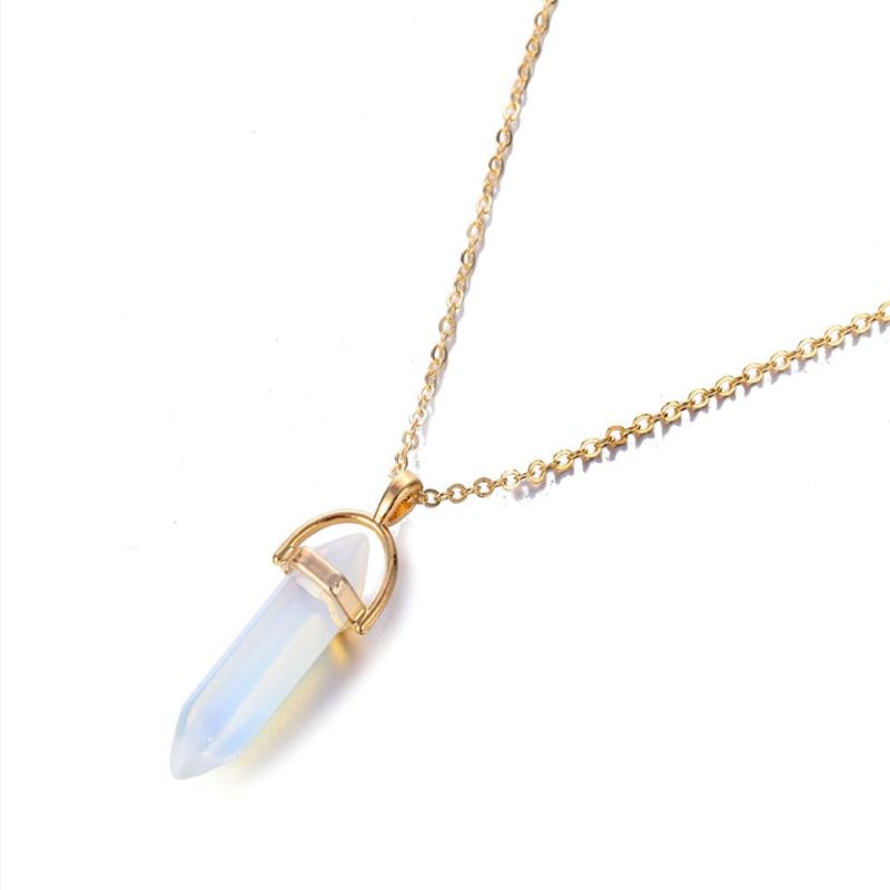 Hexagonal Pendant Necklace Natural Stone Fashionable Lady Necklace