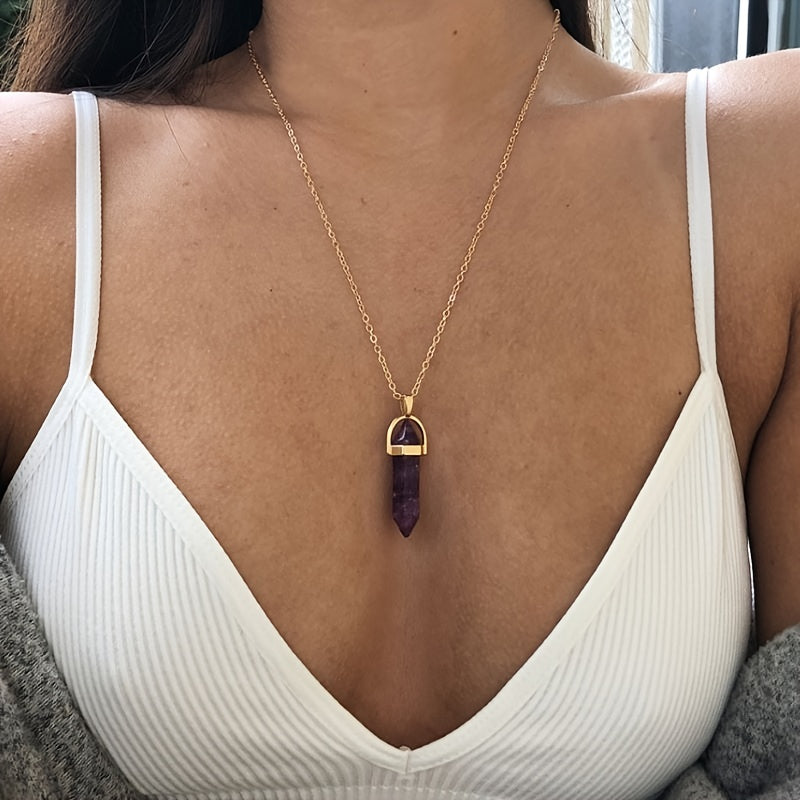 Elevate your style with this trendy hexagonal pendant necklace featuring natural stone. Perfect for adding a touch of personality to any outfit.