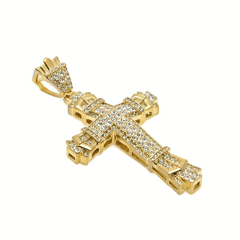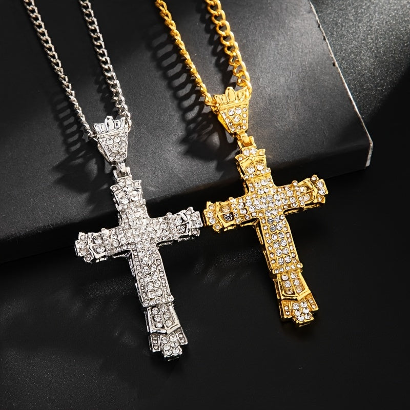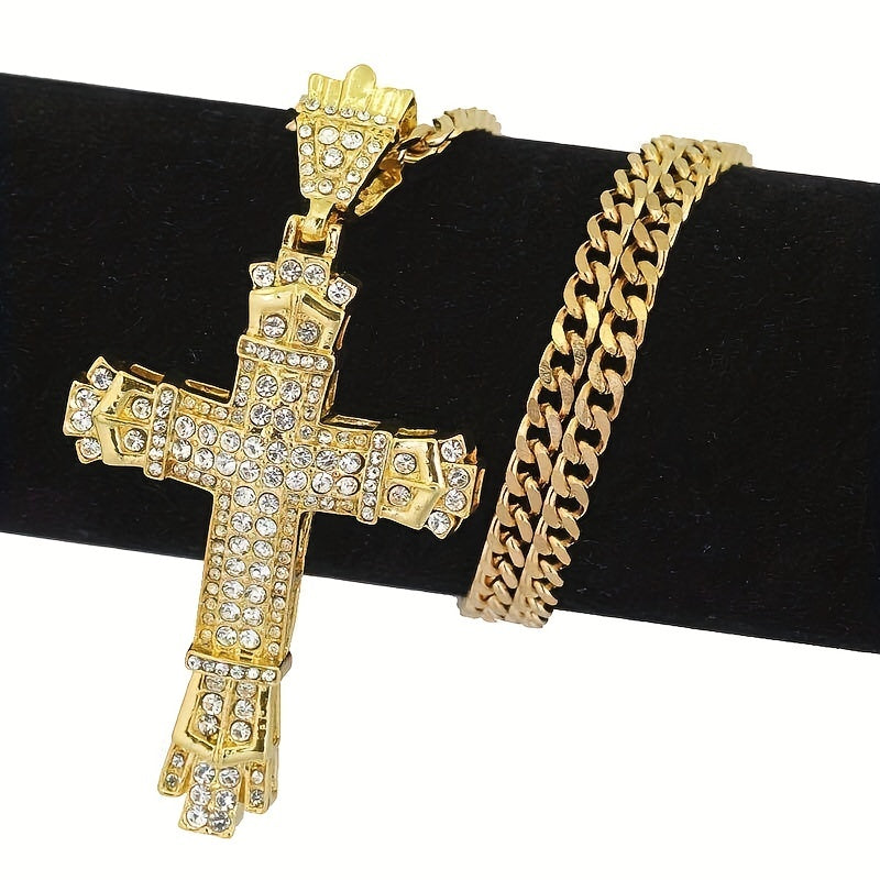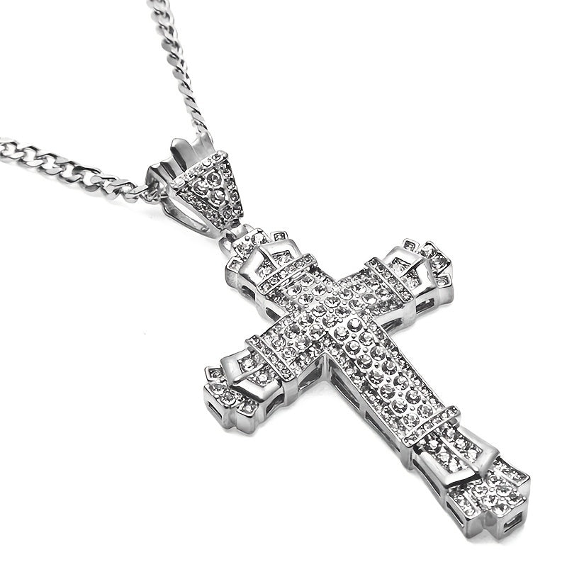 Add a touch of urban flair to your style with this vintage men's necklace featuring a hip hop cross design embellished with faux diamonds.