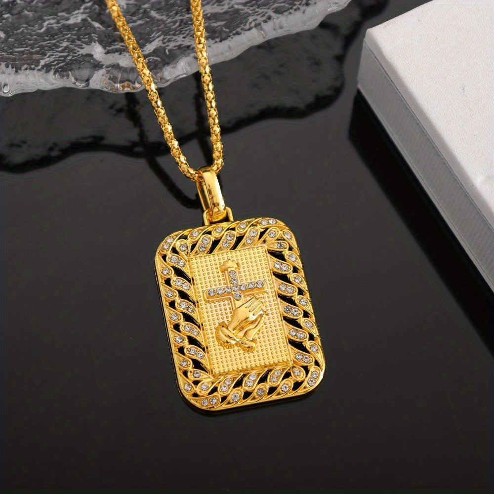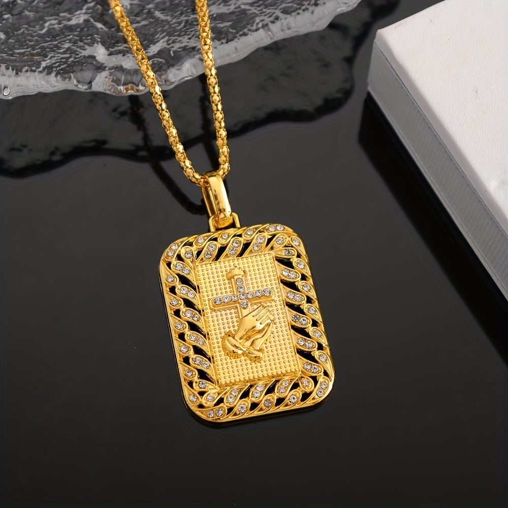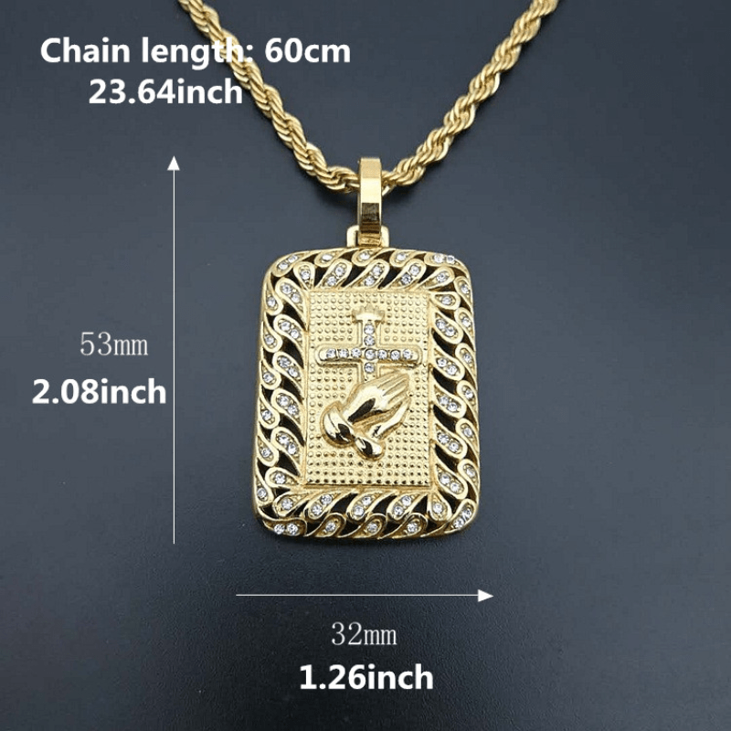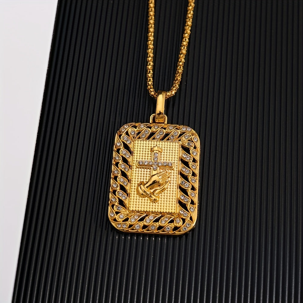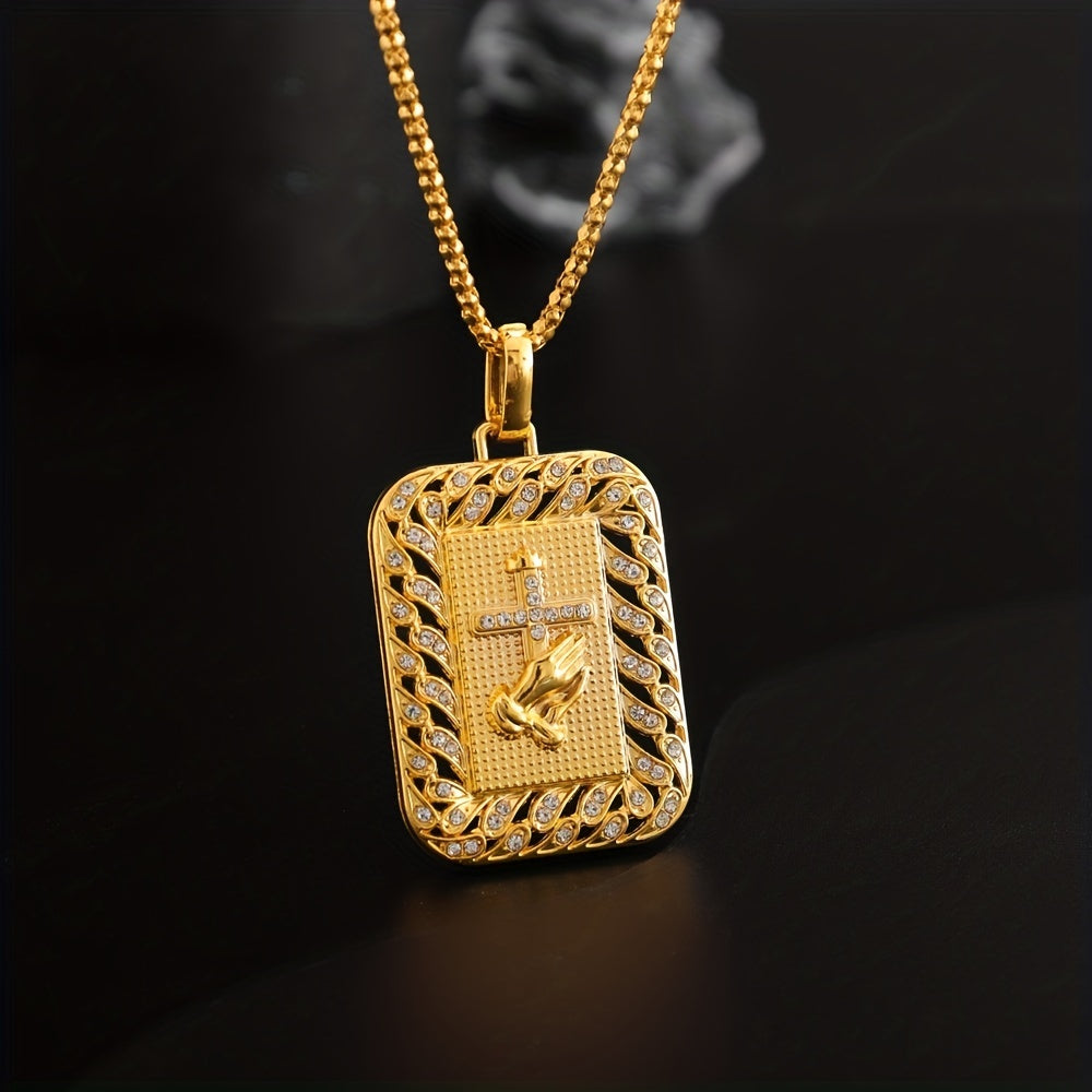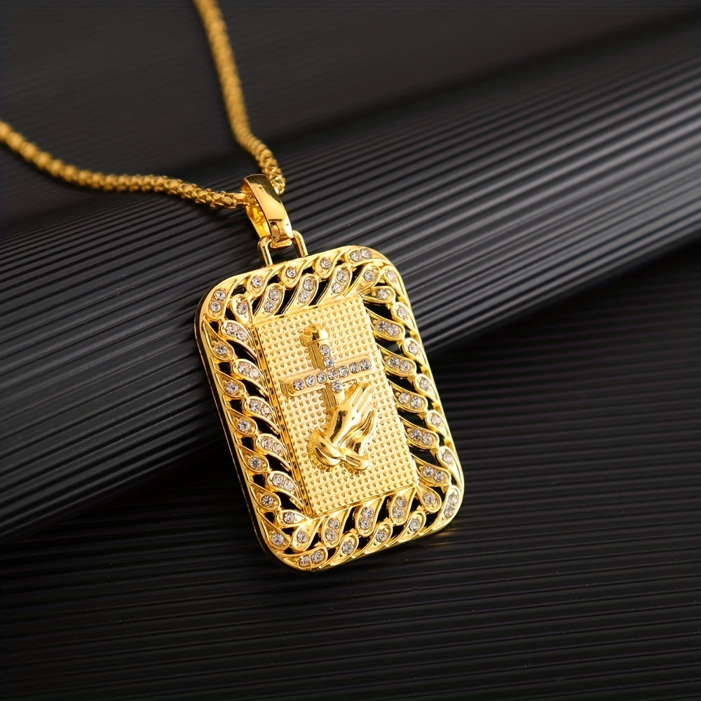 Stylish cross pendant necklace with diamond rhinestones, perfect for hip hop fashion enthusiasts.