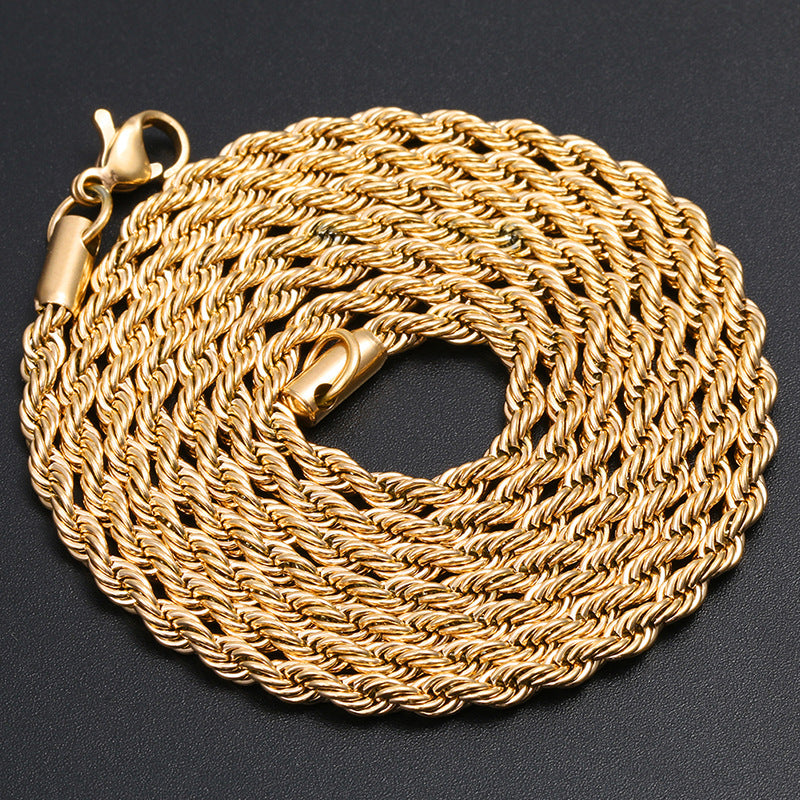 This hip hop jewelry necklace features a vacuum protection electroplating on a 3MM stainless steel twist chain. Perfect for a stylish look!