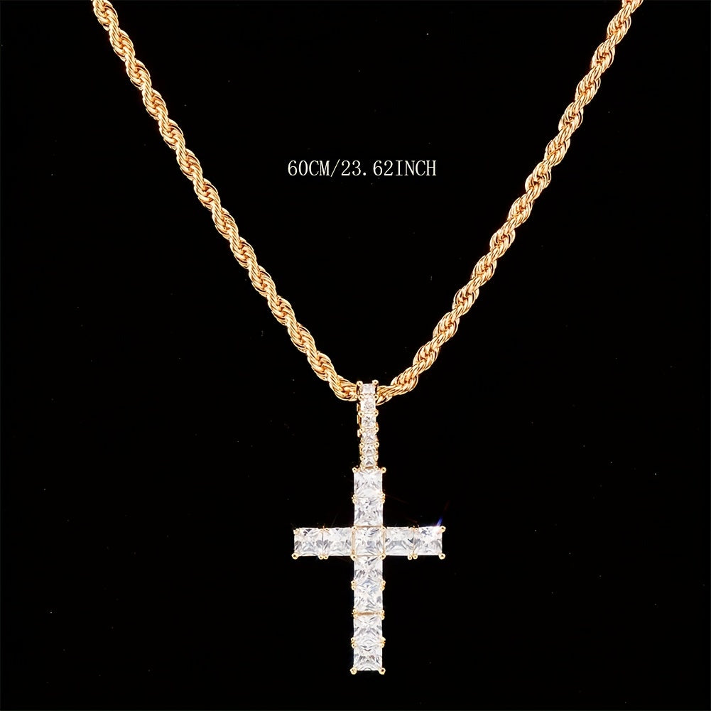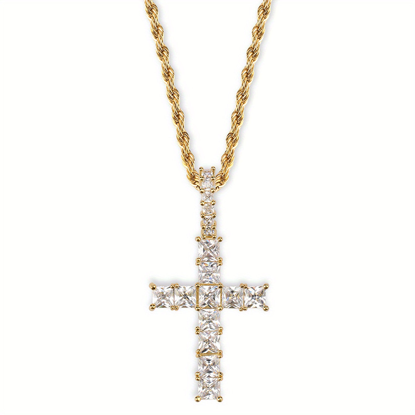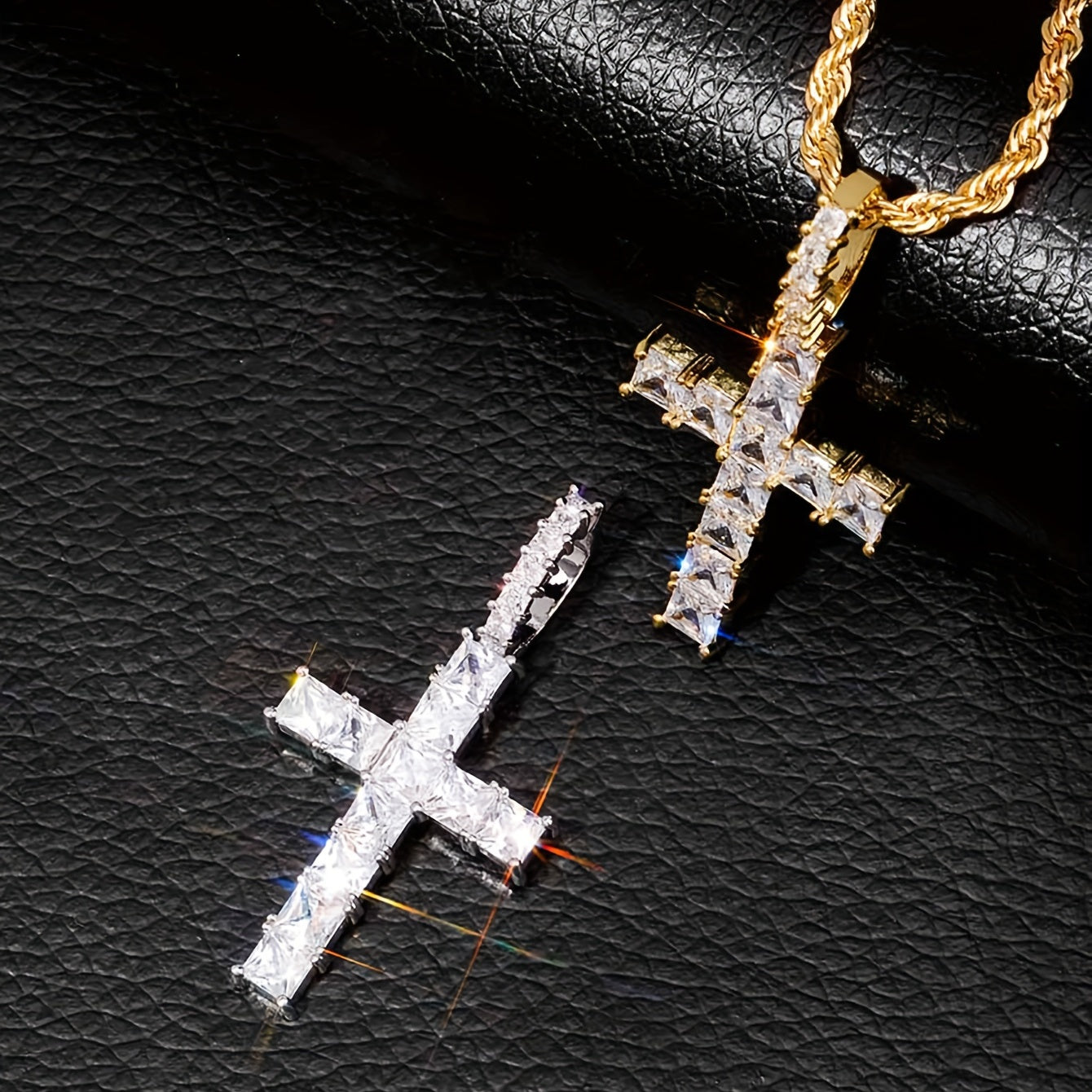 Make a bold statement with this large retro style cross pendant necklace featuring zircon stones. Perfect for hip hop enthusiasts.