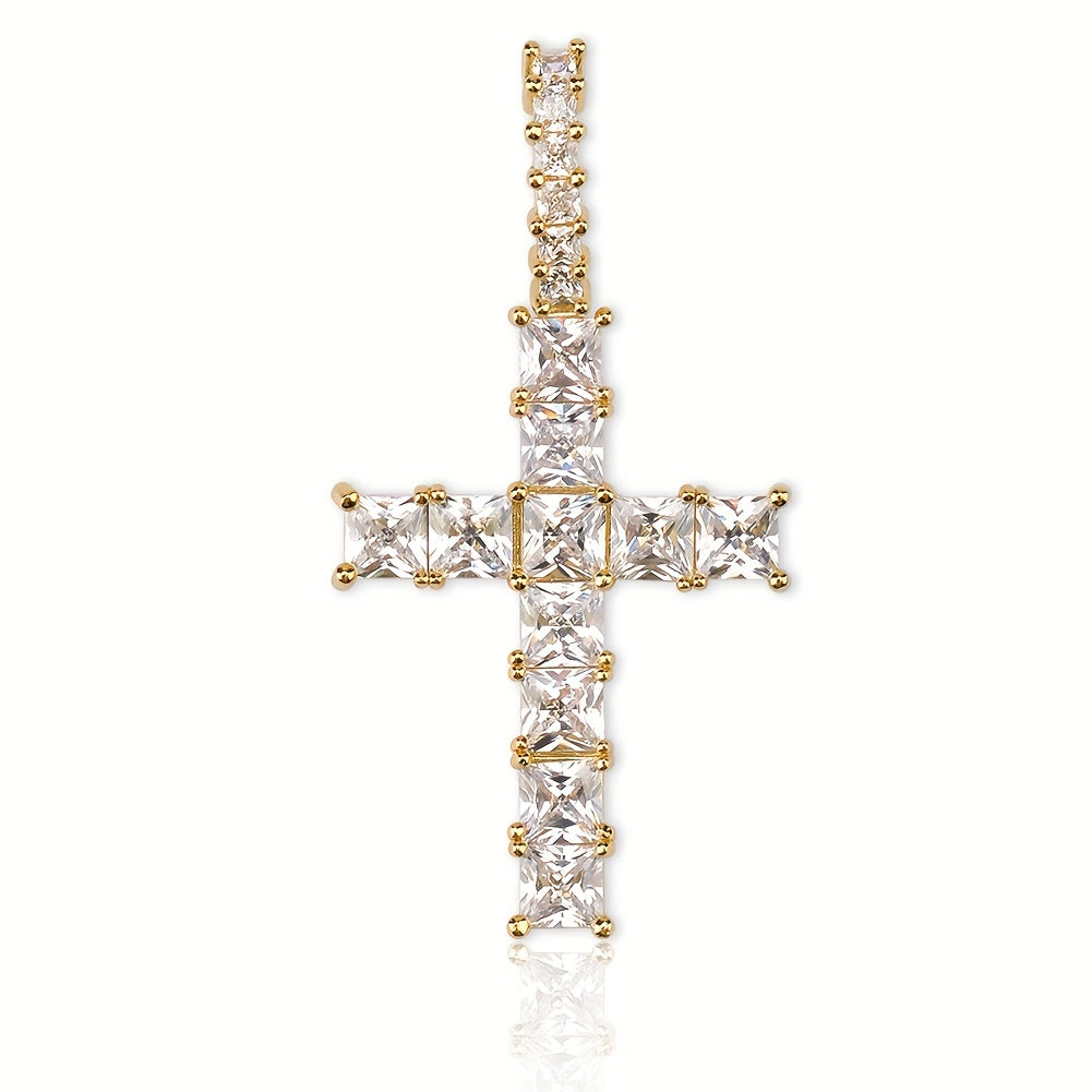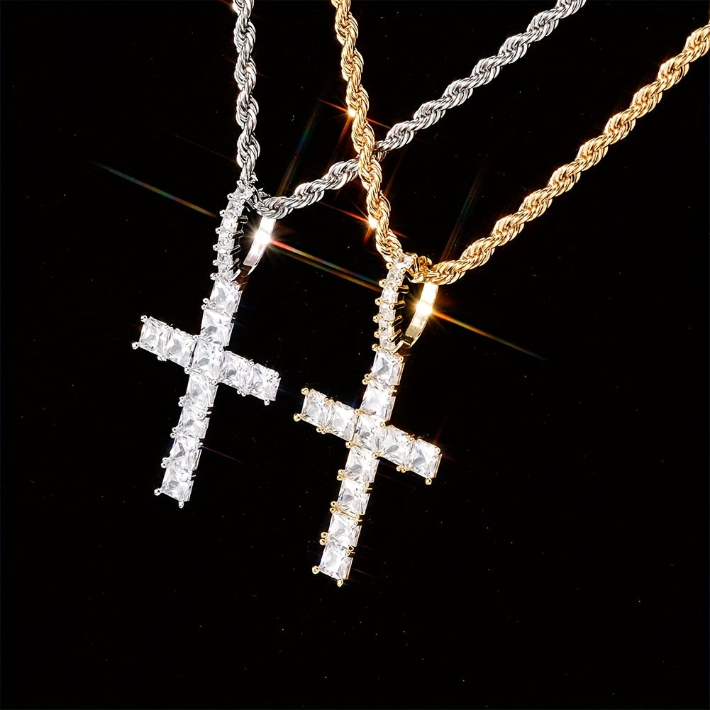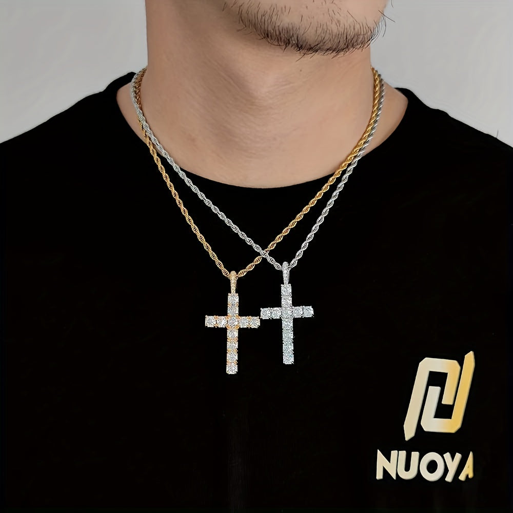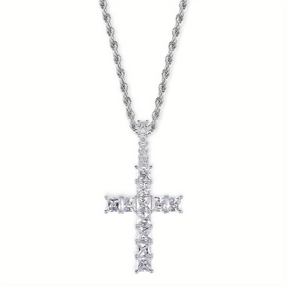 Make a bold statement with this large retro style cross pendant necklace featuring zircon stones. Perfect for hip hop enthusiasts.
