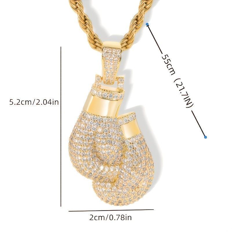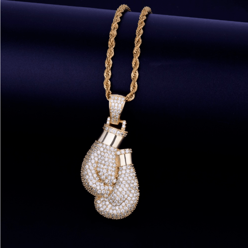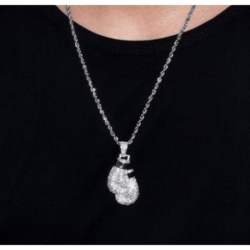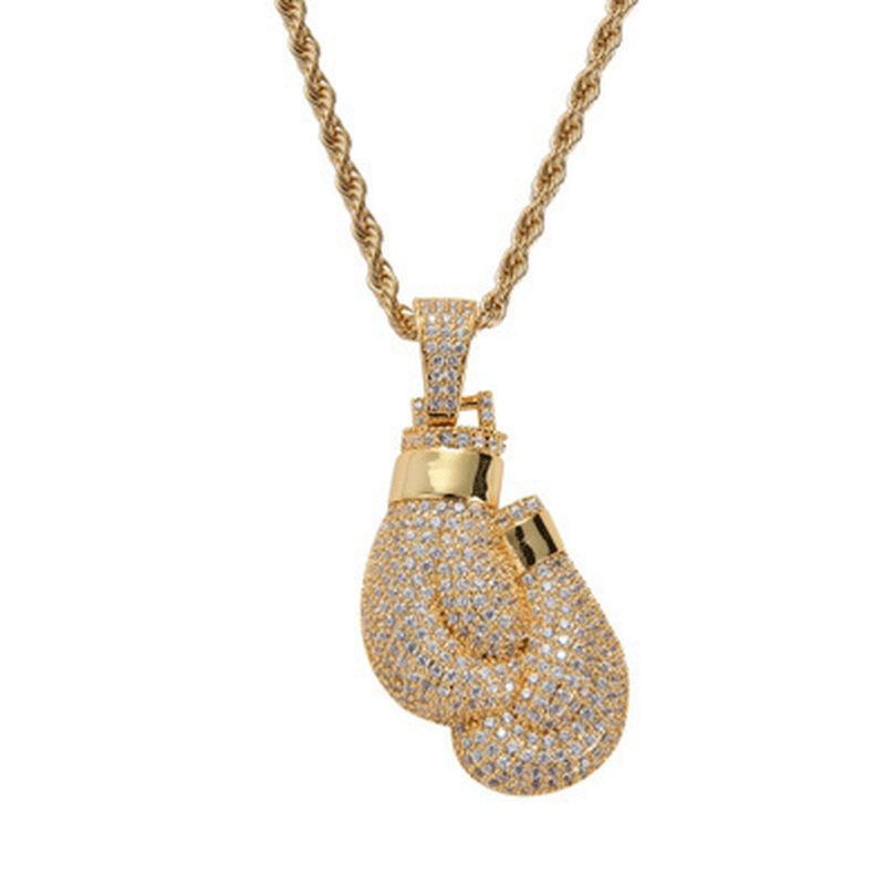 Hip Hop Men's Boxing Gloves Necklace Metal Ice Out Pendant Party Jewelry