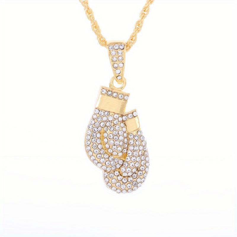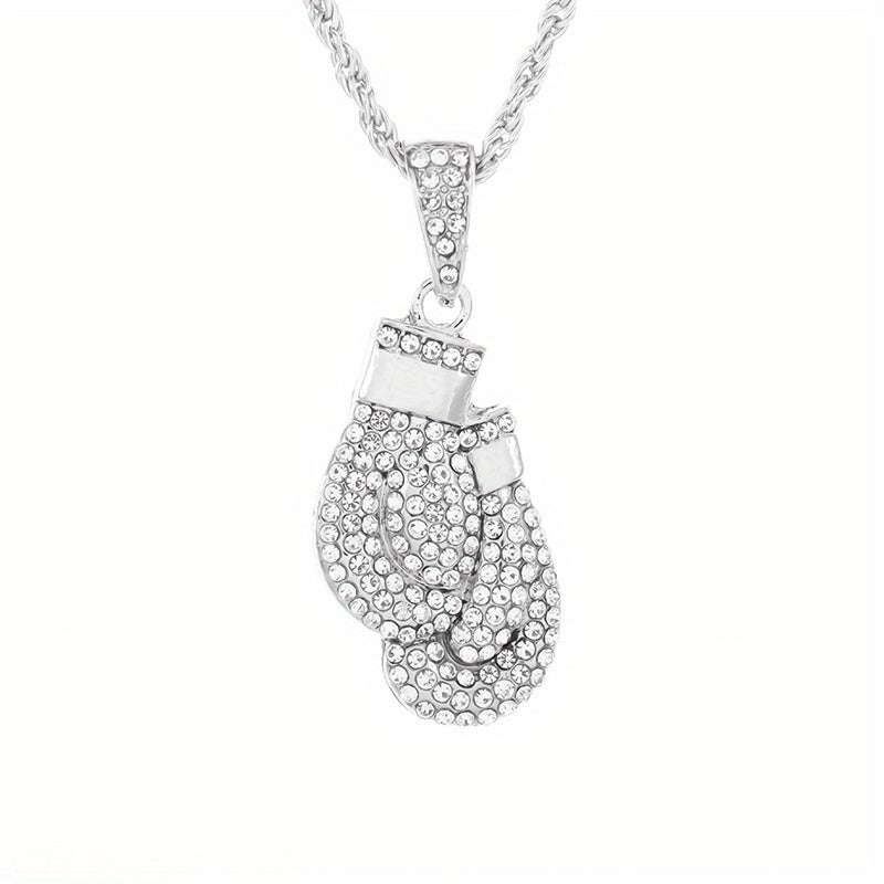 This stylish necklace features a hip hop men's boxing gloves pendant that is high in metal and ice out design. Ideal for parties and events, this necklace adds a touch of artificial jewelry to your outfit.