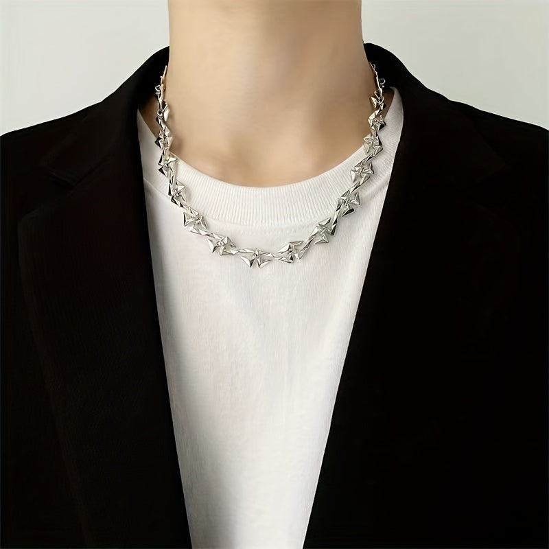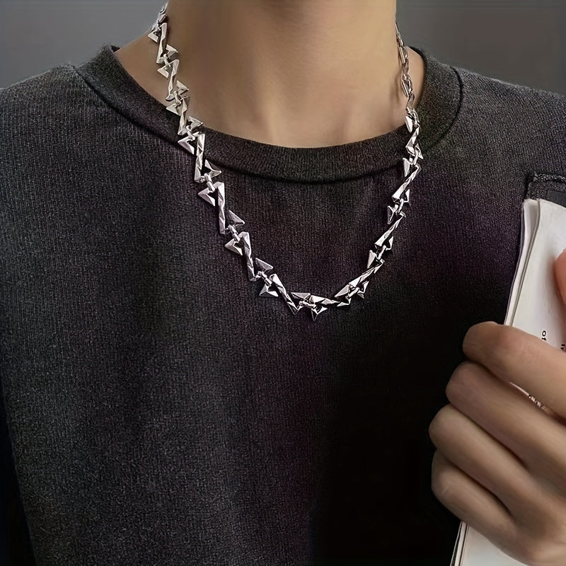 This hip hop letter splicing necklace is a stylish and versatile accessory for men. Made of punk titanium steel, it's a non-fading collarbone necklace that makes a great gift for friends.