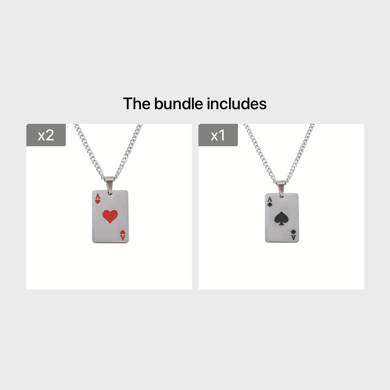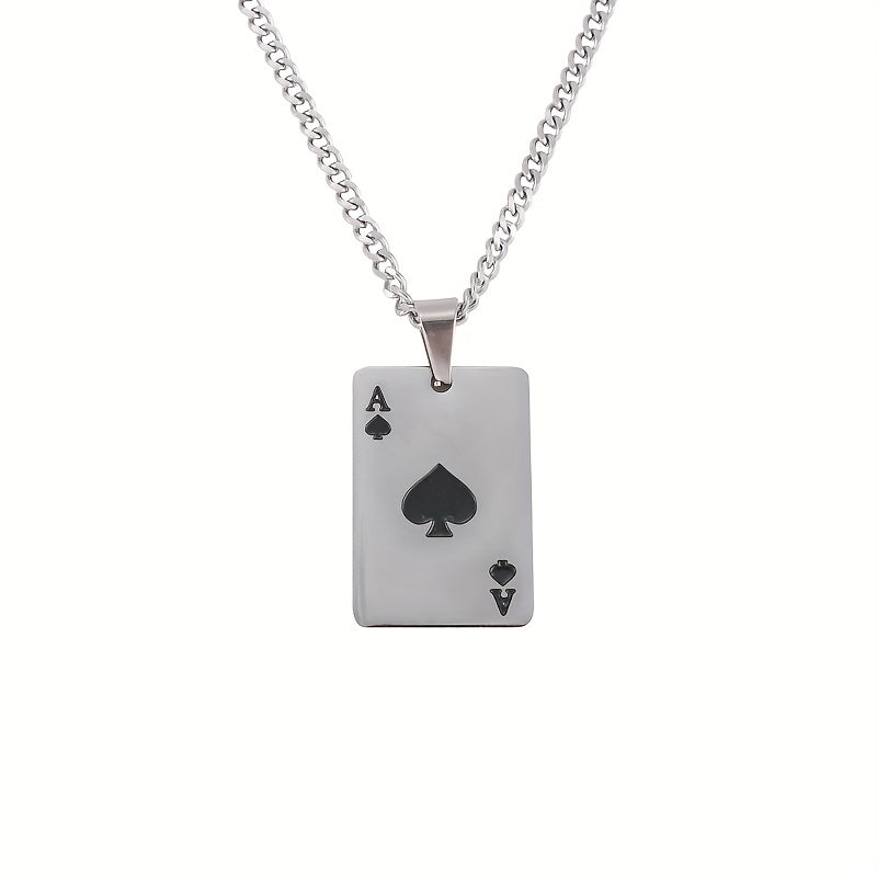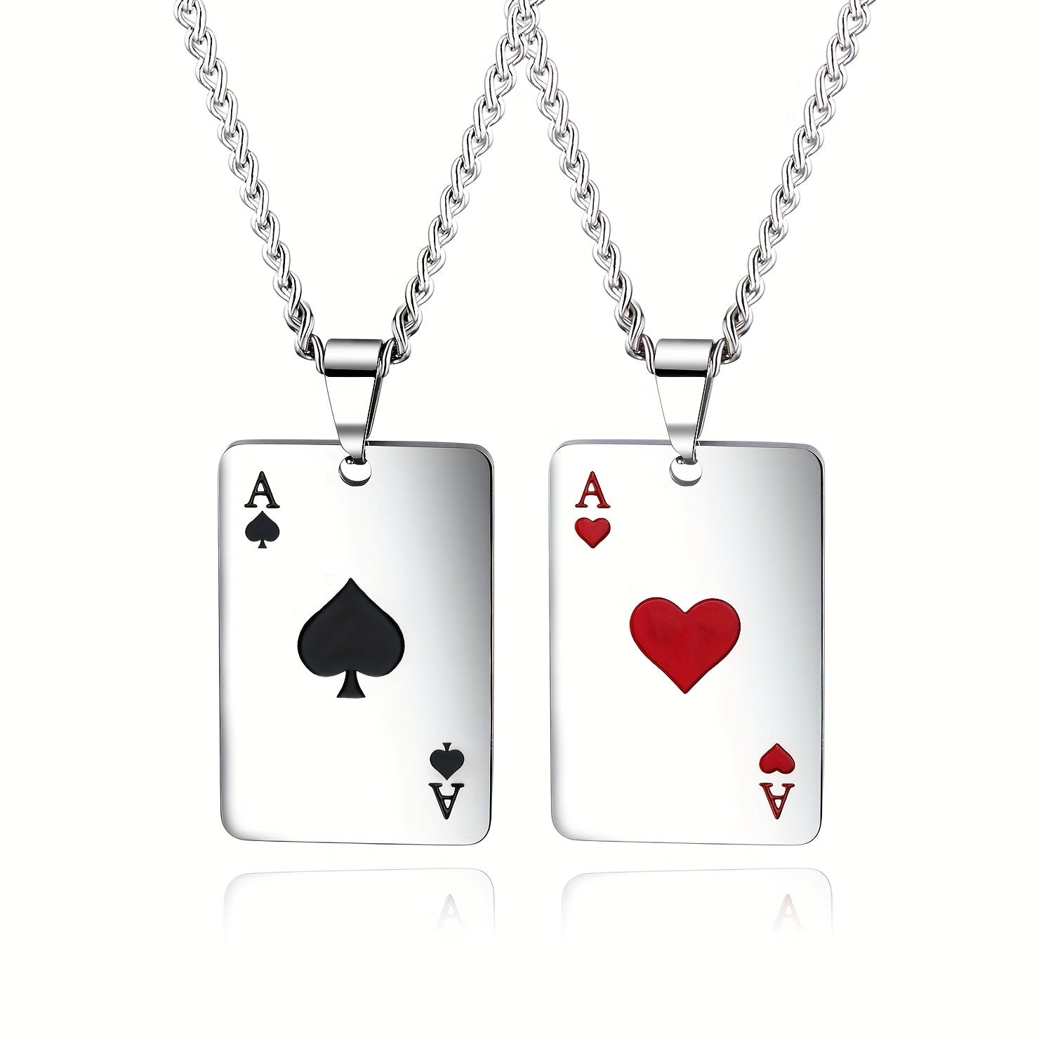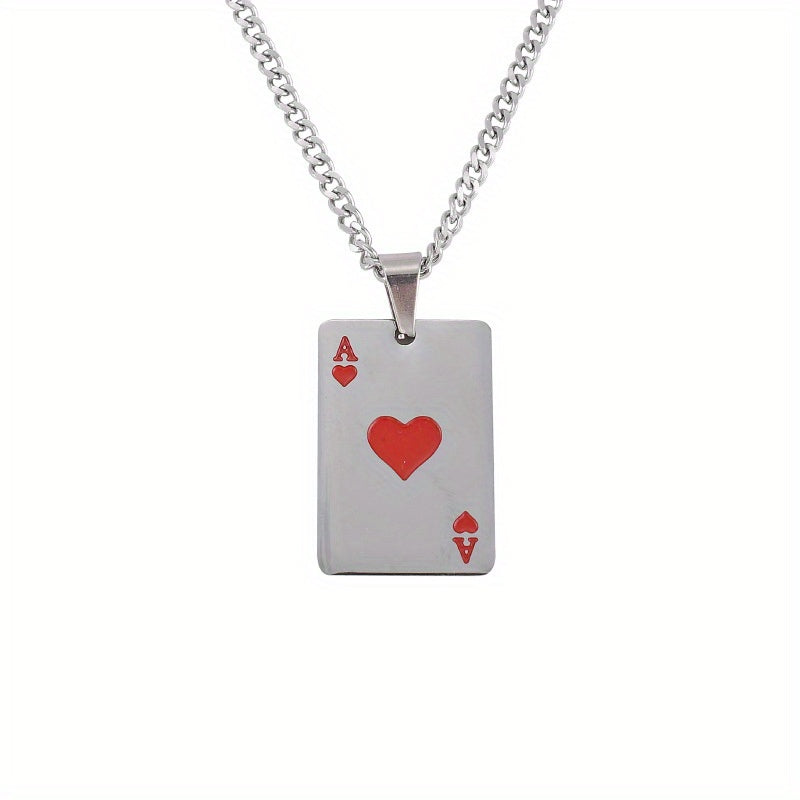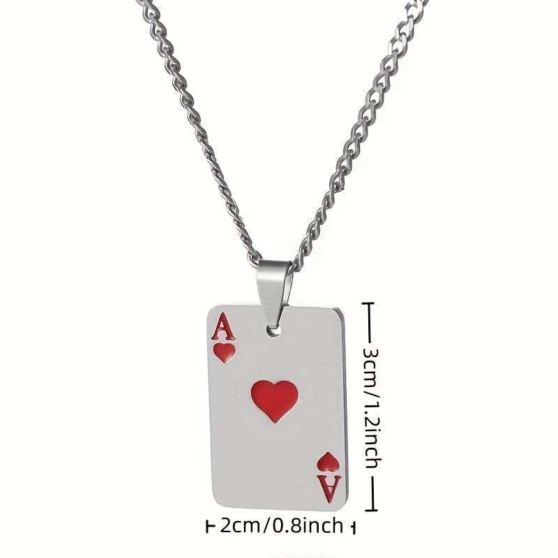 This stylish necklace features a playing card design with a red peach and a love pendant, perfect for both men and women.