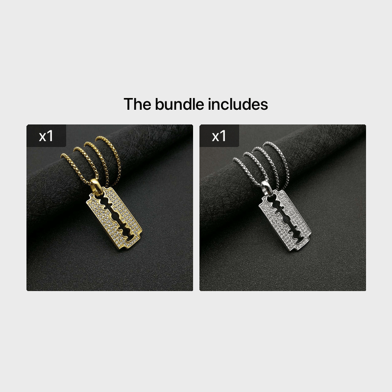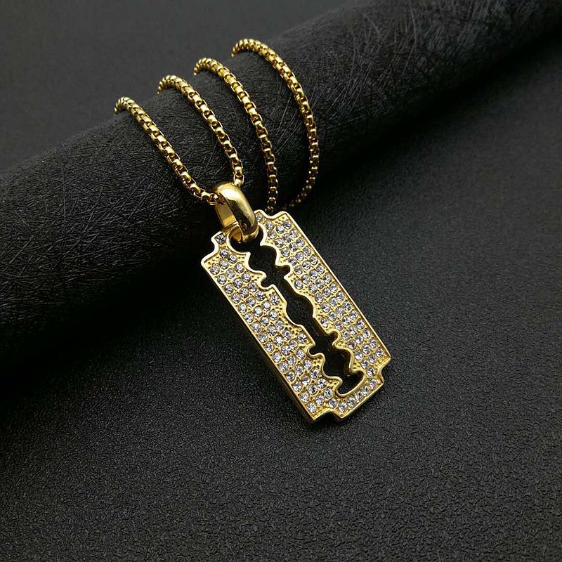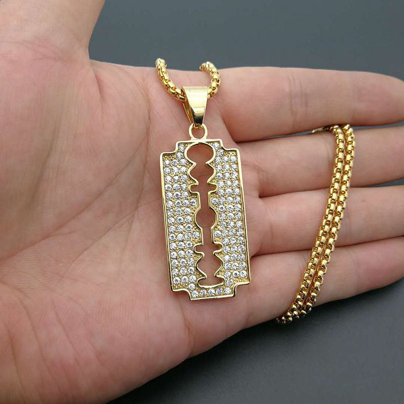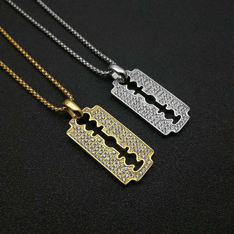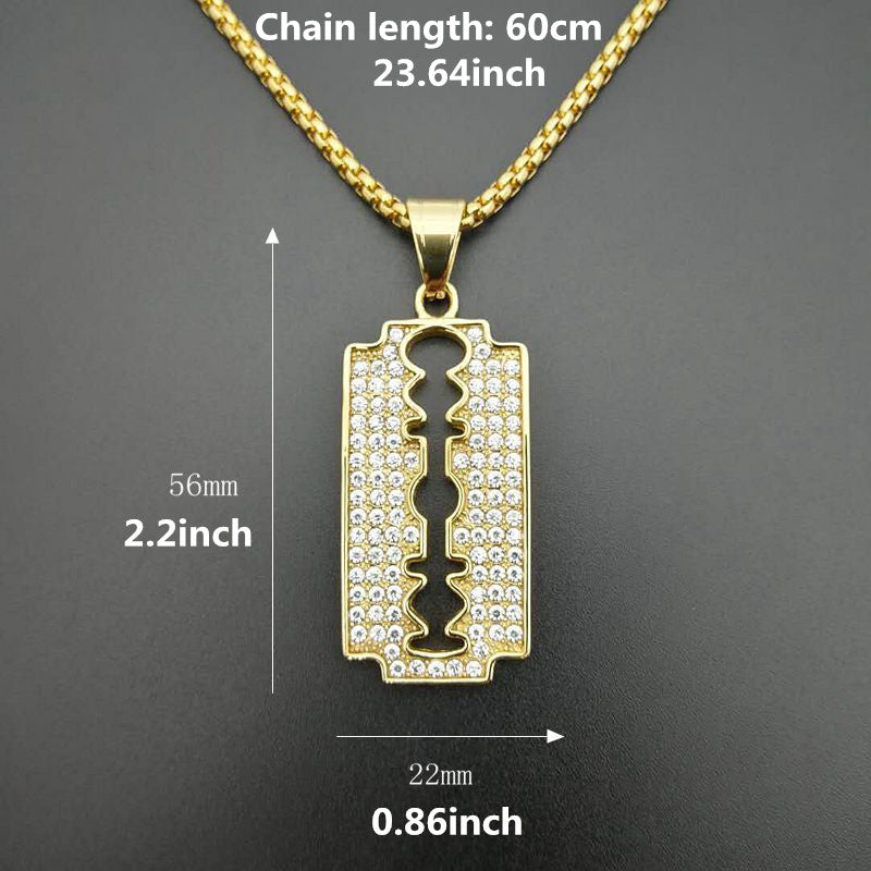 Enhance your style with this Hip Hop Jewelry Plated Rhinestone Razor Blade Pendant Necklace.