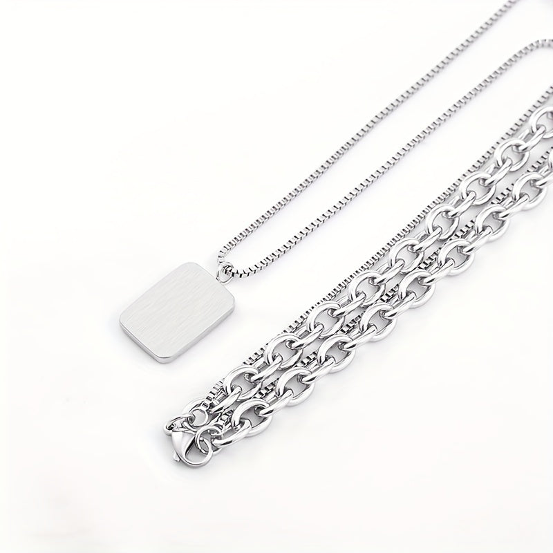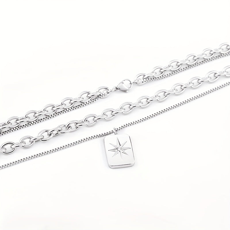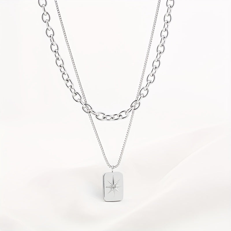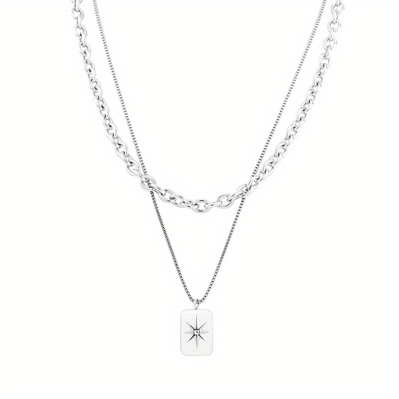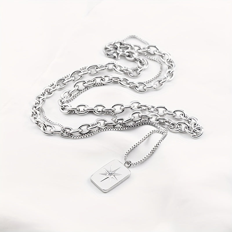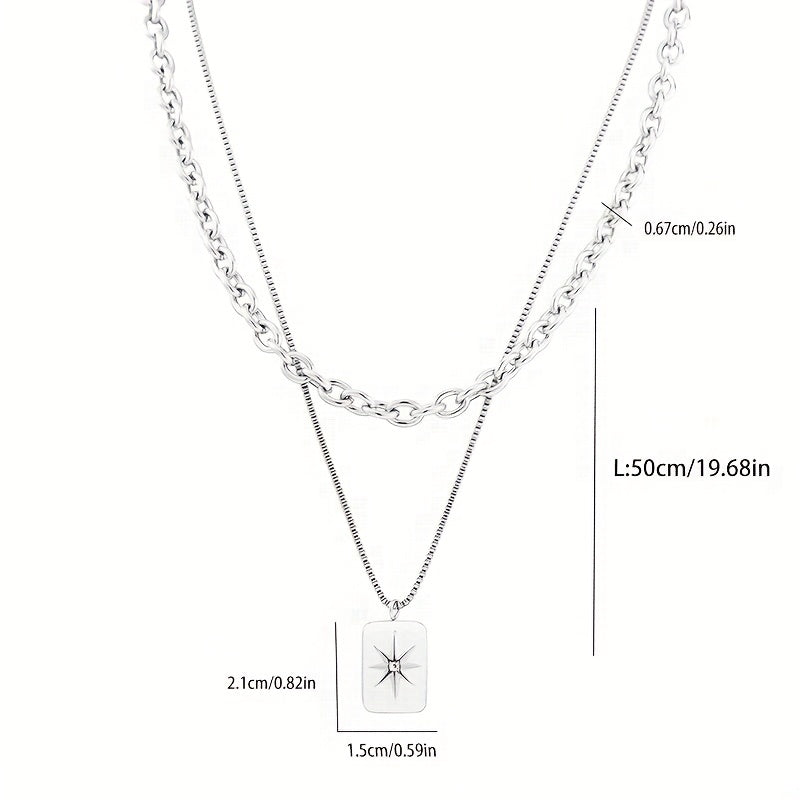 Hip hop Silver Star Pendant Double Stacked Necklace Men's Accessories