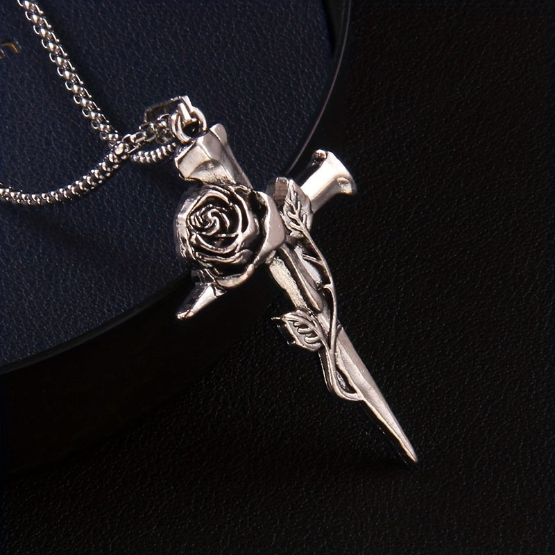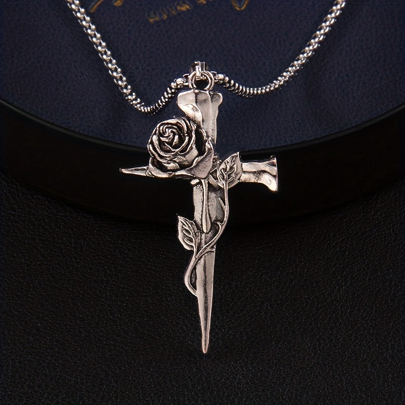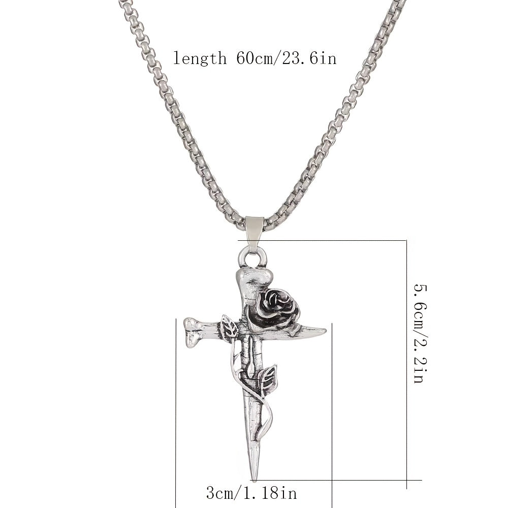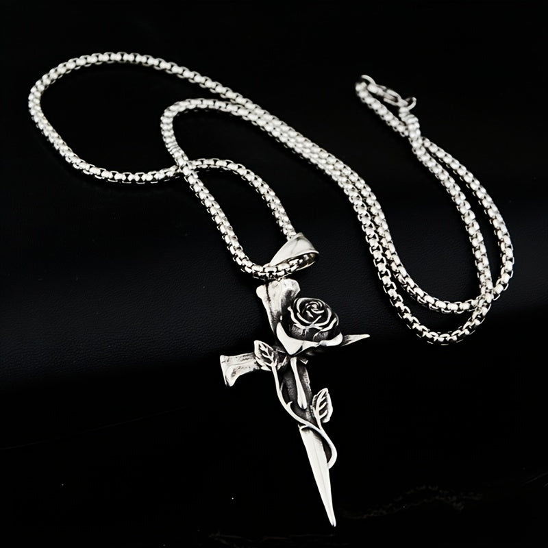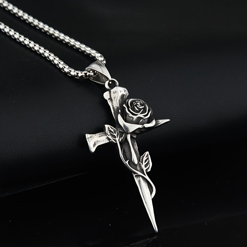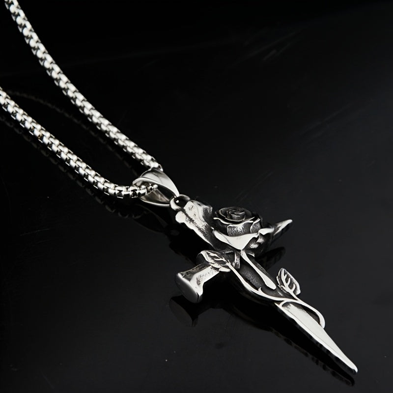 This necklace features a hip hop vintage rose cross design crafted from durable titanium steel. It's a stylish and unique accessory for men with a strong personality.