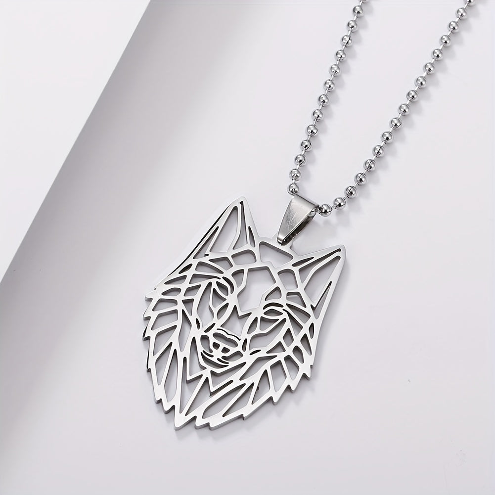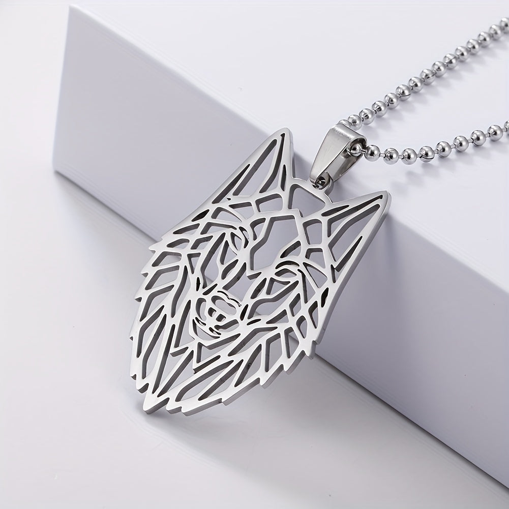 Stylish stainless steel pendant featuring a hollow wolf head design for men, perfect for casual wear.