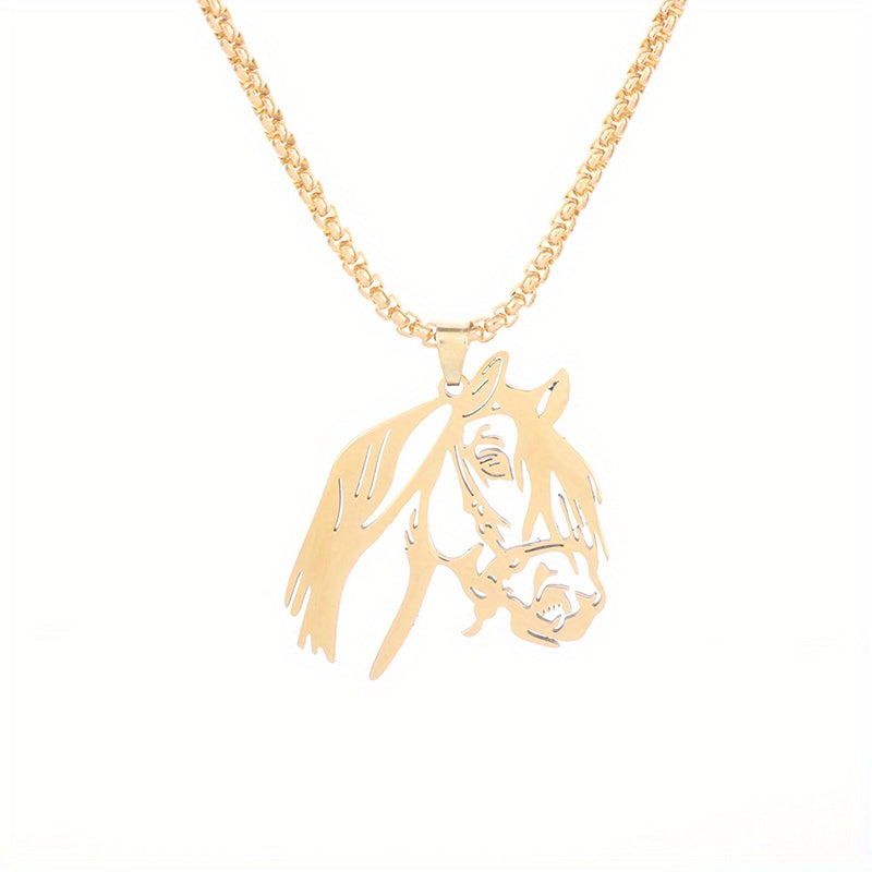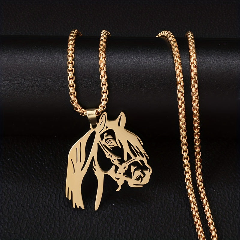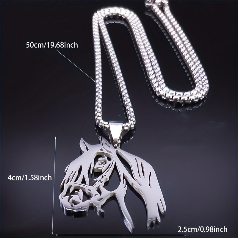 This necklace features a horse head pendant made of stainless steel, perfect for men and women who love punk style fashion. It is a bold and edgy accessory that adds a unique touch to any outfit.