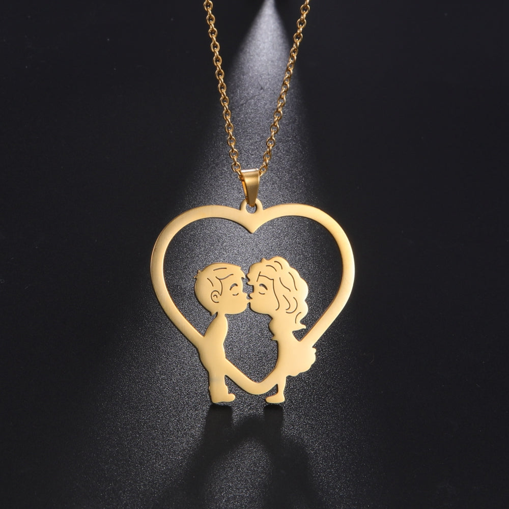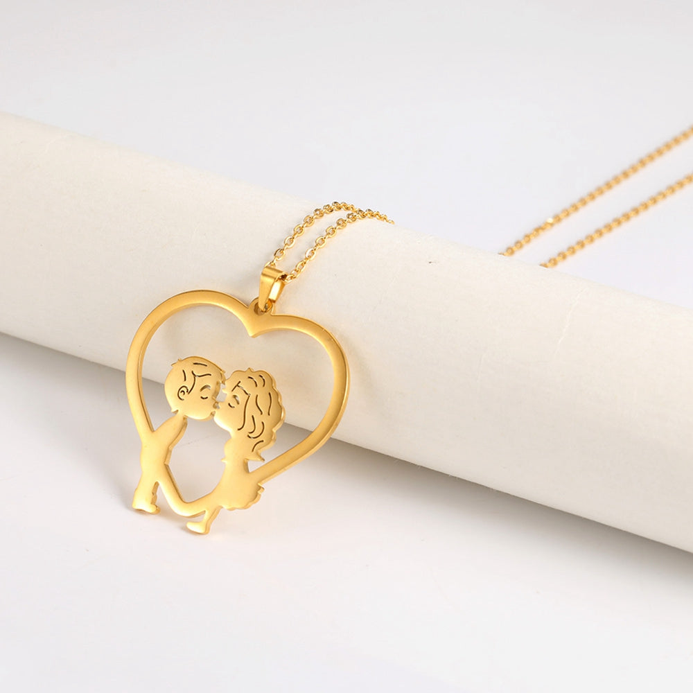 This kiss lover shape necklace is a perfect jewelry gift for boys and girls. It is made of high-quality stainless steel, suitable for men and women.