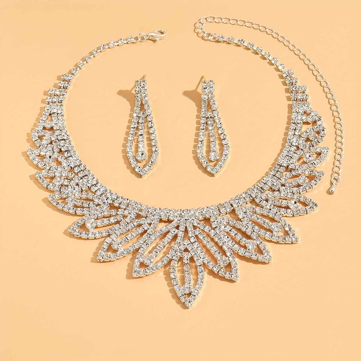 Ladies Glitter Rhinestones Necklace & Earrings Set