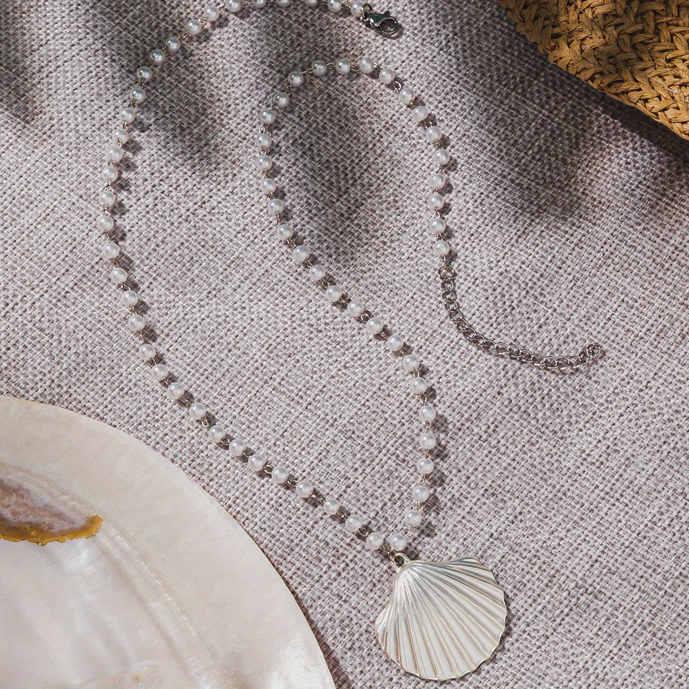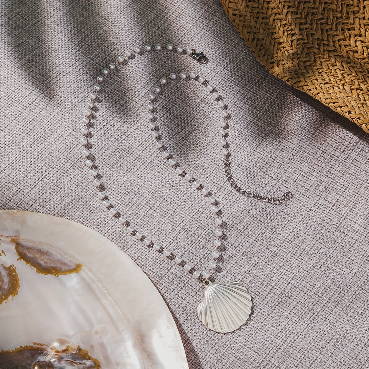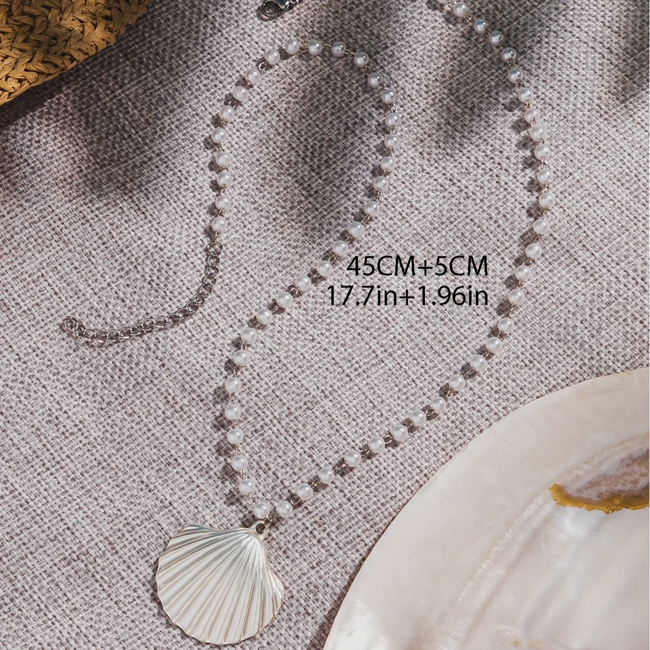 Add a touch of summer beach vibes to your outfit with this stunning large shell faux pearl pendant necklace. Perfect for any beach lover or as a gift for a special occasion.