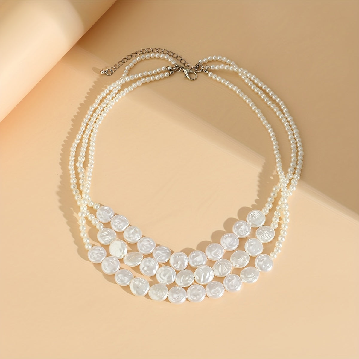 Add a touch of elegance with this multilayer faux pearl beaded clavicle necklace, perfect for women and girls.