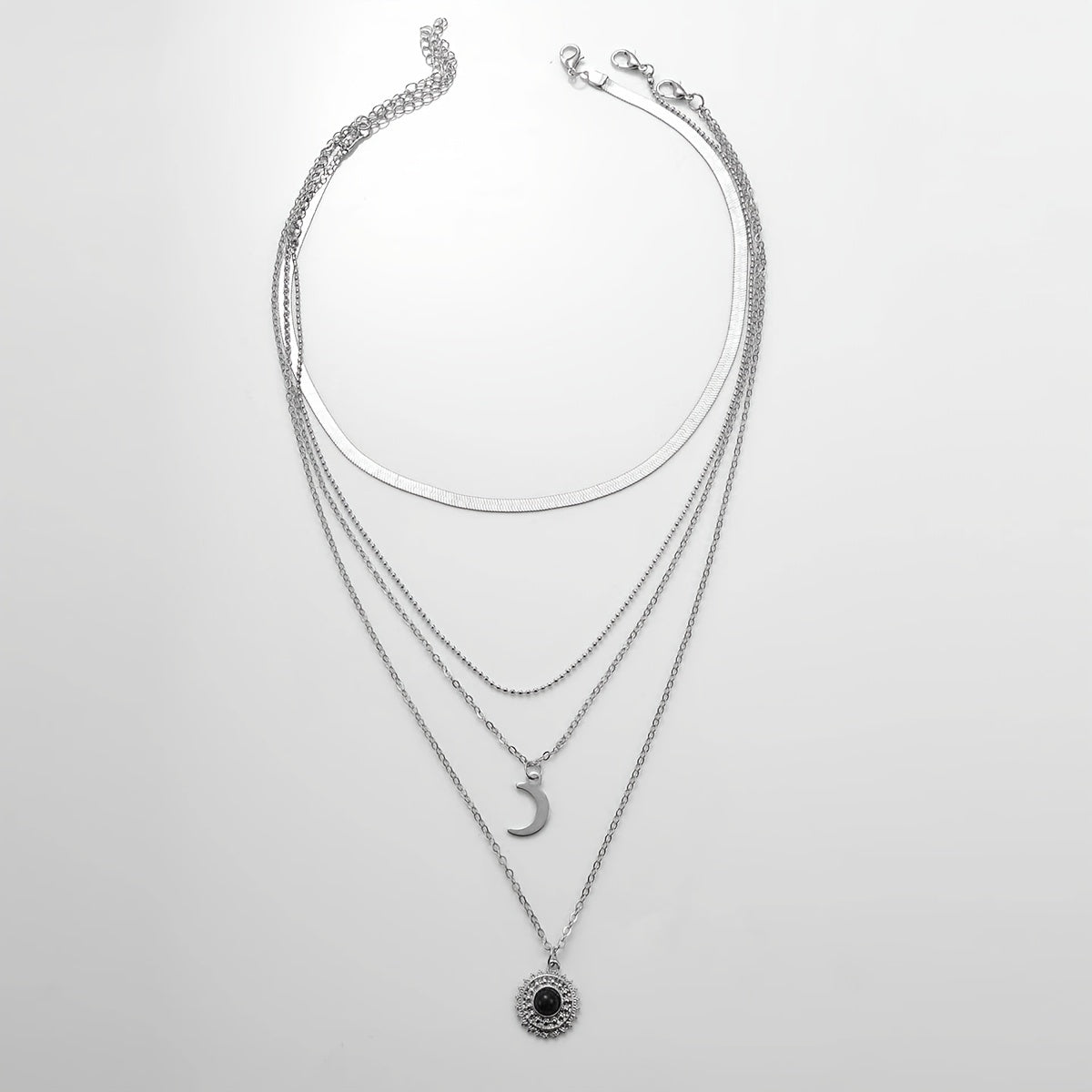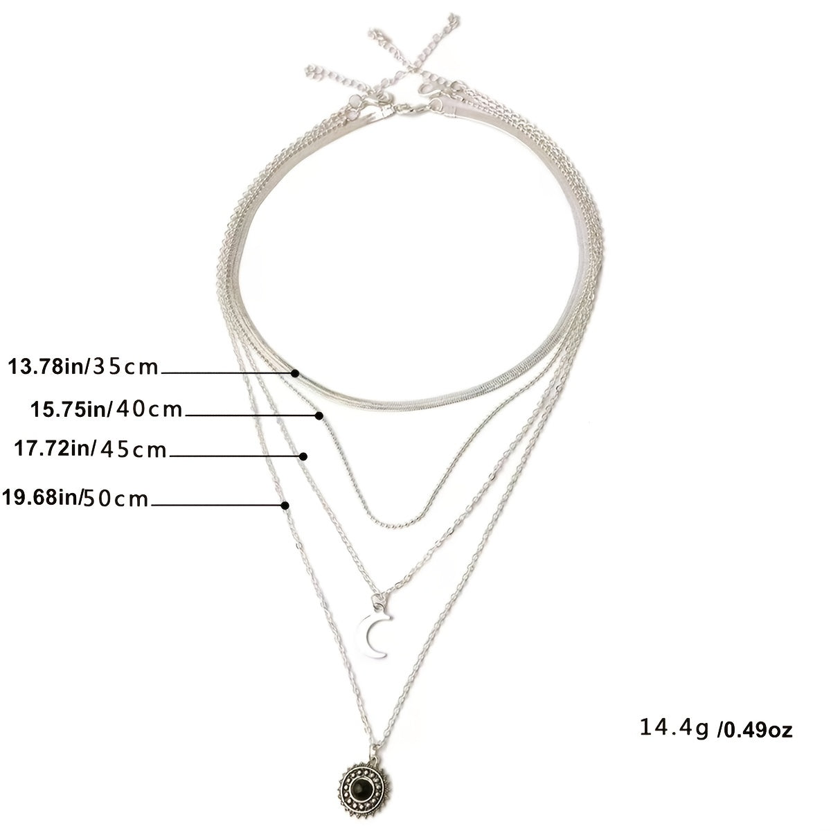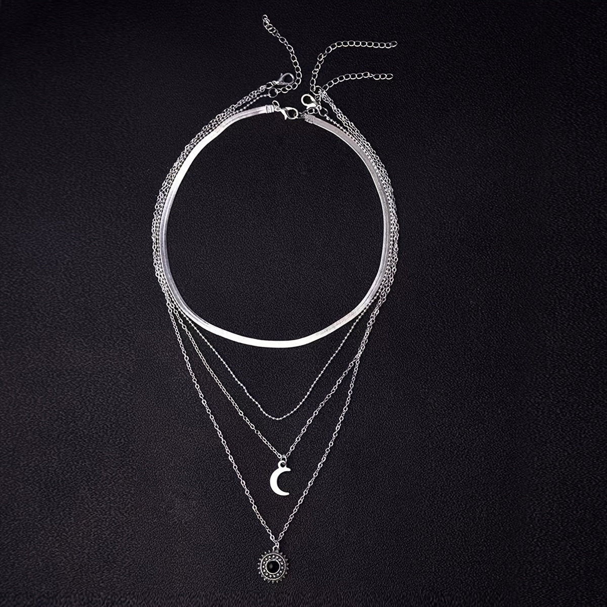 • Layered design with sun and moon pendants