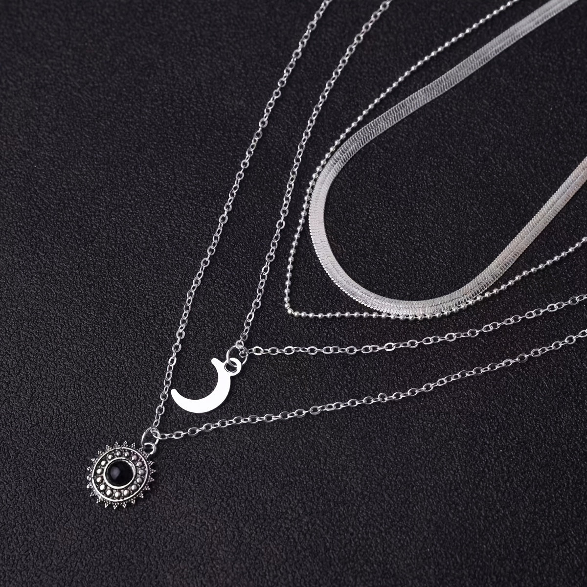 Layered Sun Moon Pendant Necklace Women's Jewelry