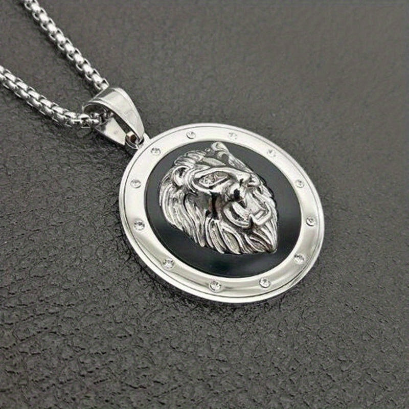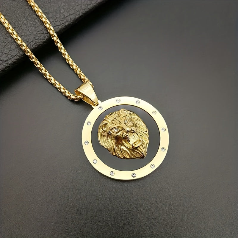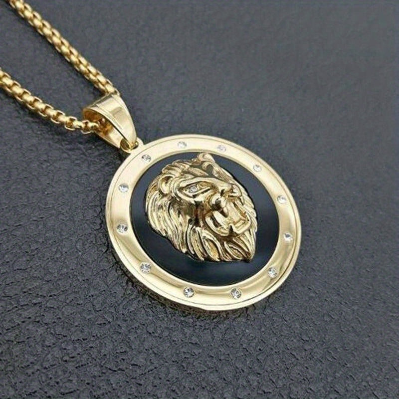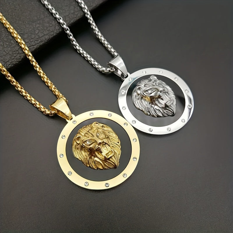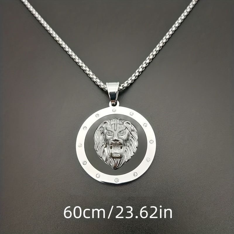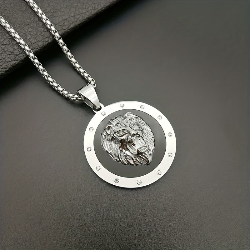 Add a touch of bold style to your outfit with this lion head chain necklace featuring a round pendant. Perfect for men who want a statement piece.