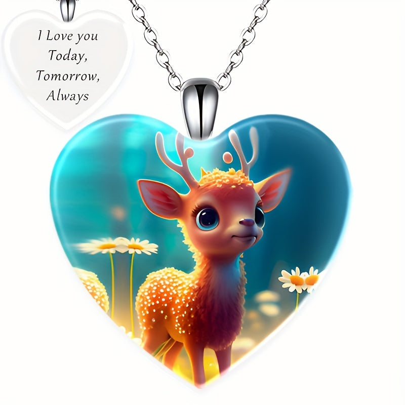 Little Deer Love Crystal Pendant Necklace Fine Jewelry For Women