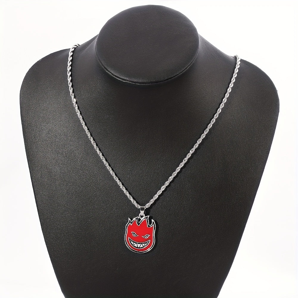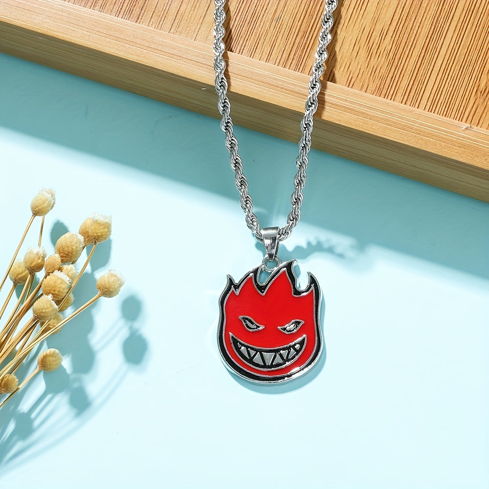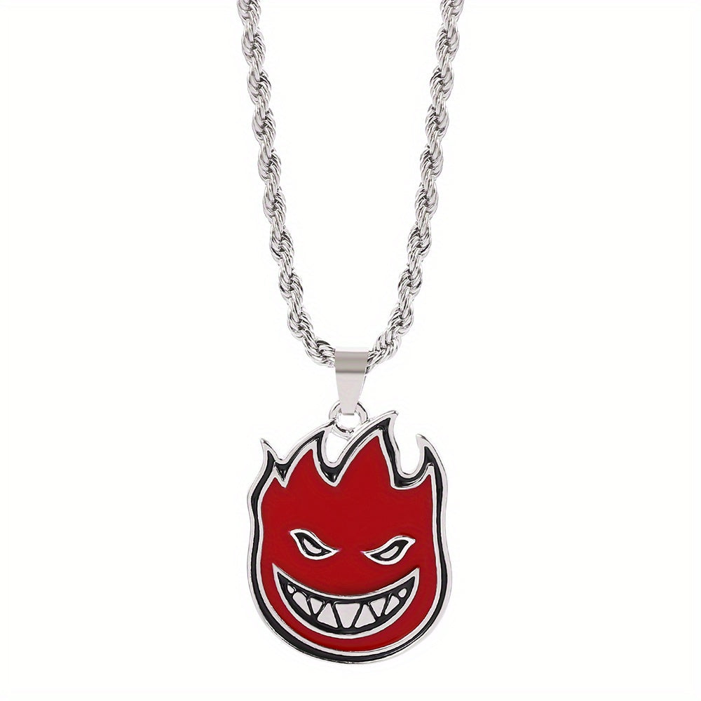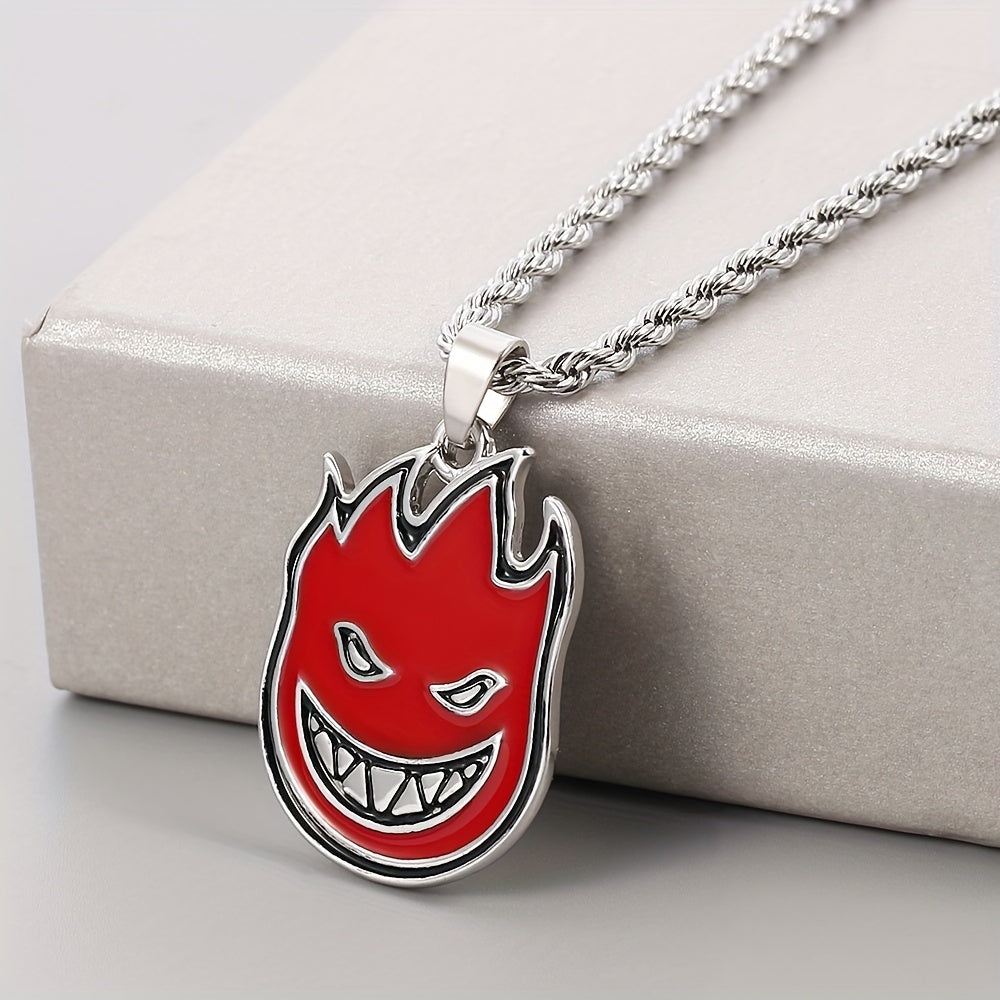 This Little Devil Red Flame Necklace features a devil smile design, perfect for men who like edgy accessories.