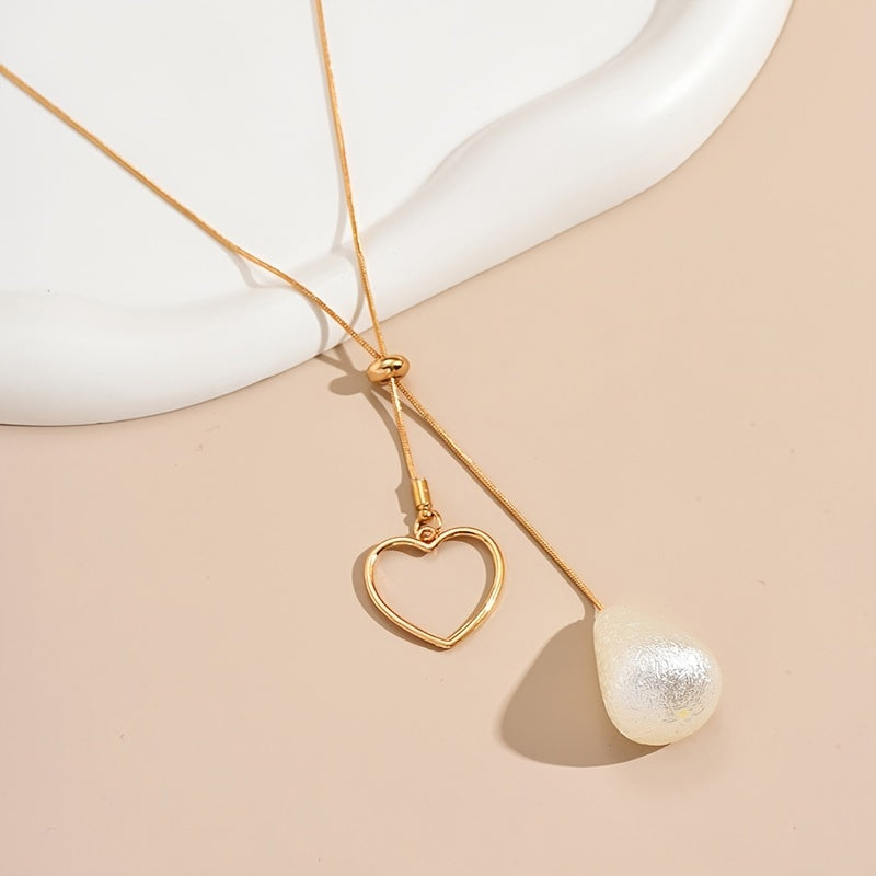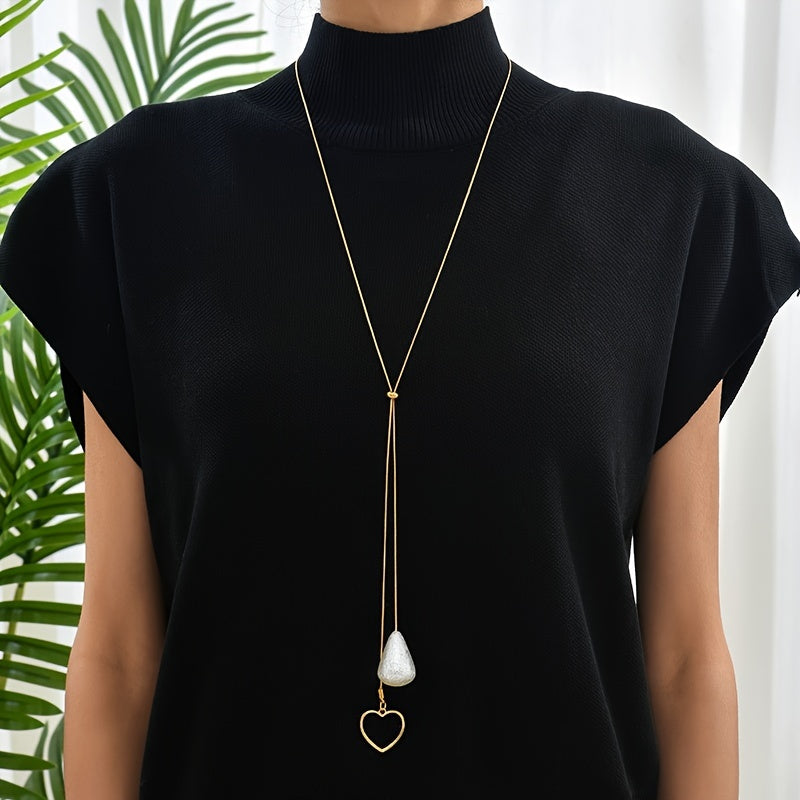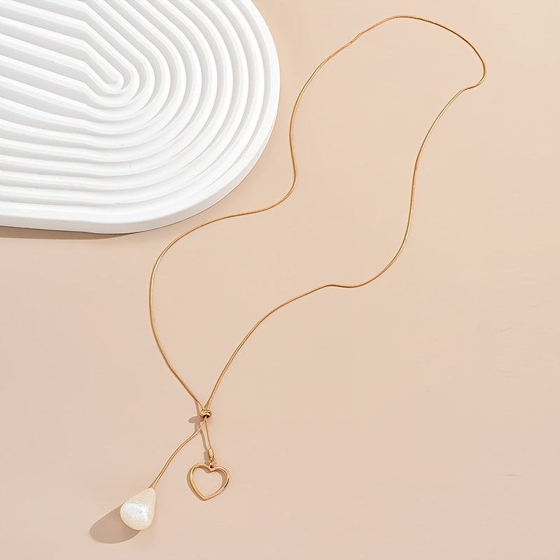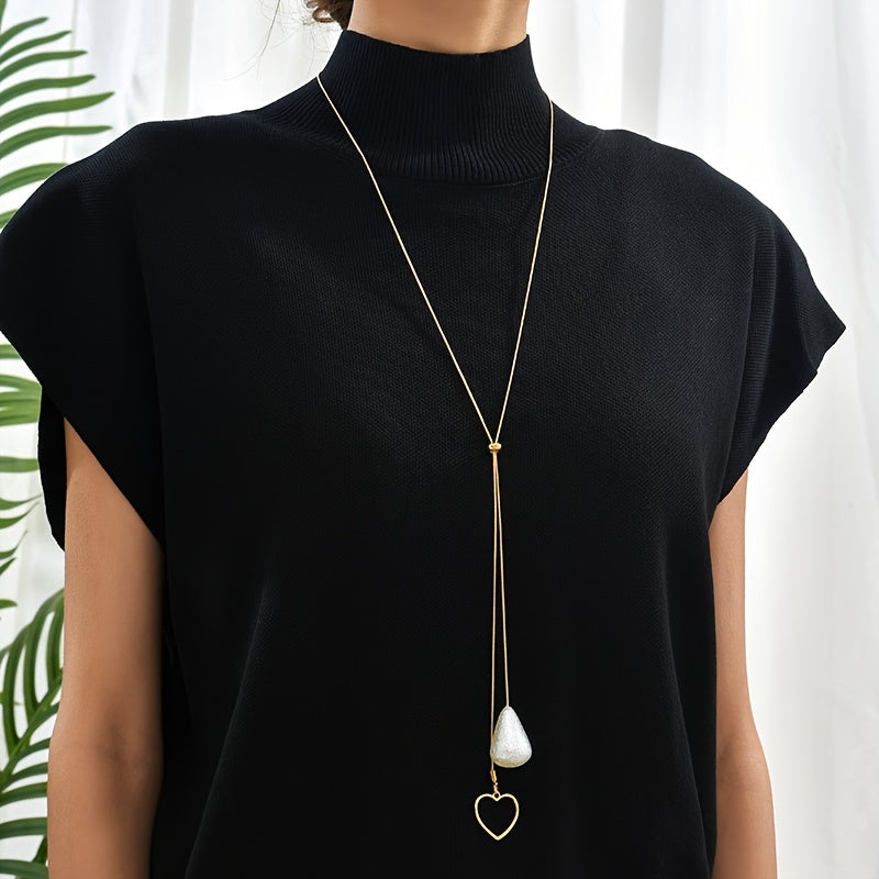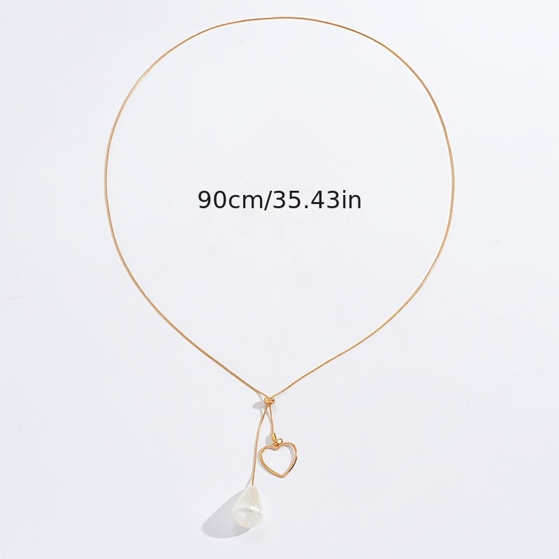 Elegant and adjustable long chain necklace with teardrop and hollow heart shape pendants, perfect as bridesmaid jewelry gift.