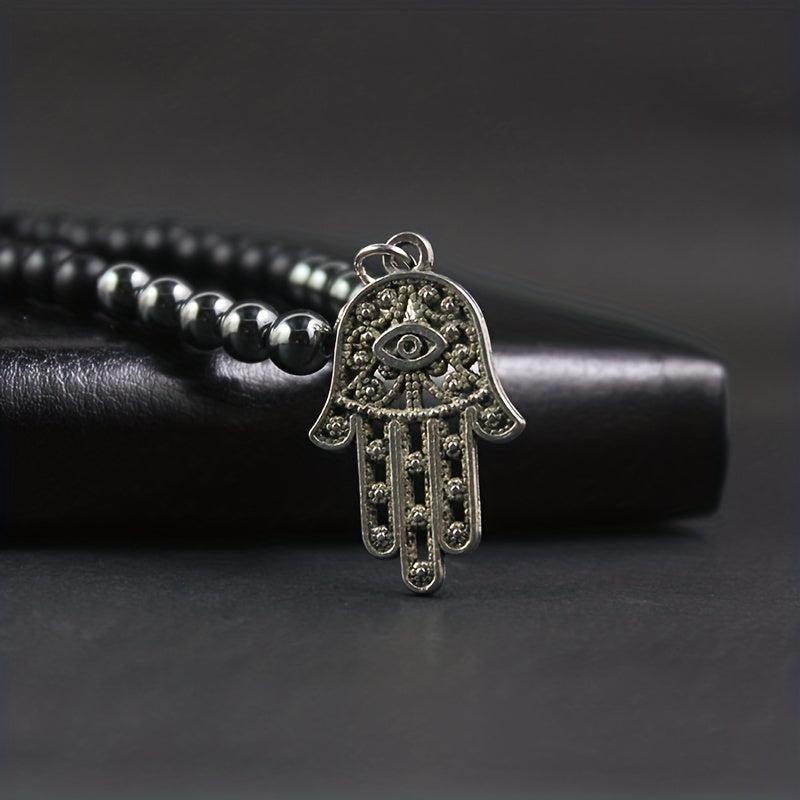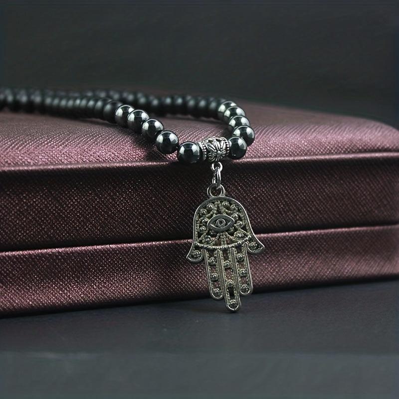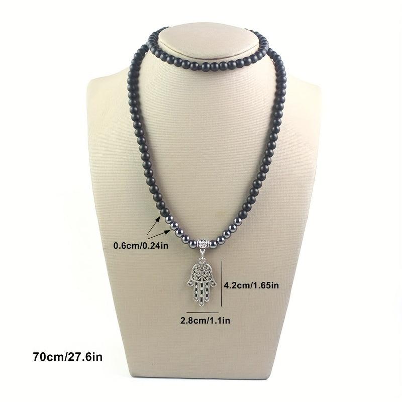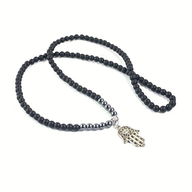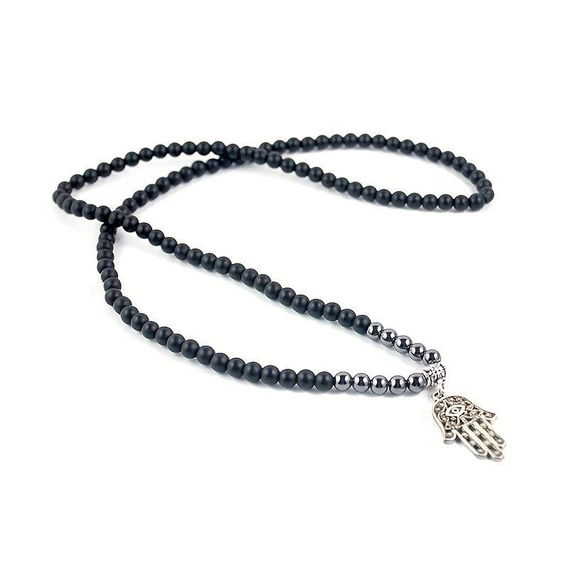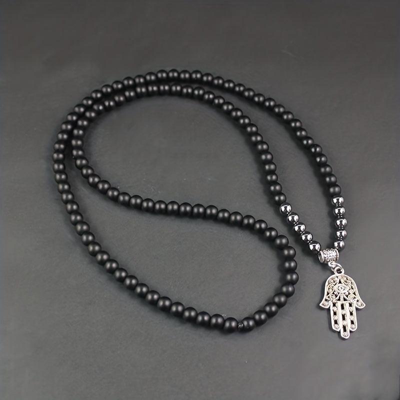 This classic pendant necklace features matte stone beads on a silver chain, adding a touch of vintage style to any outfit. Suitable for both men and women.