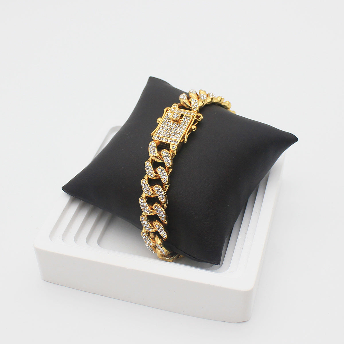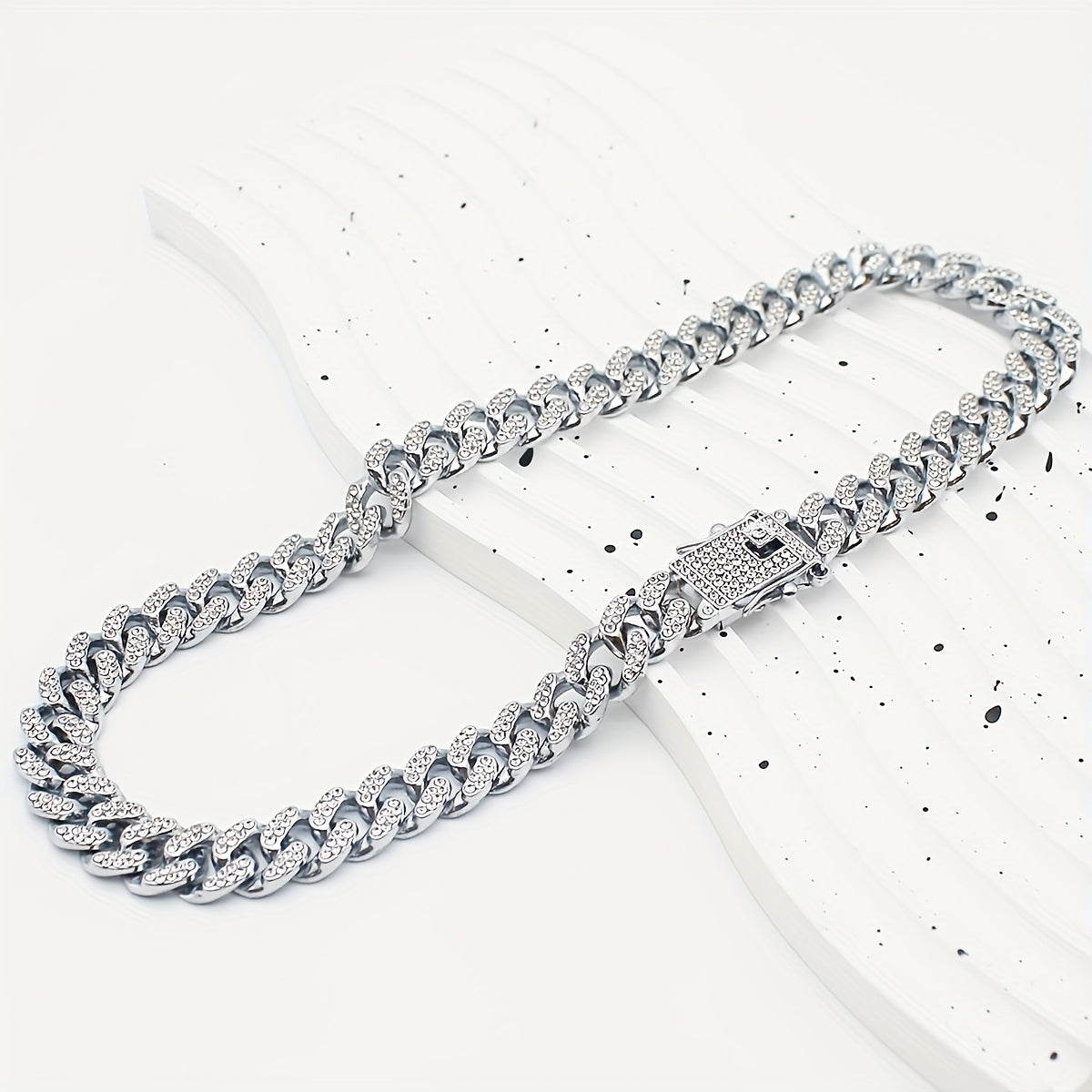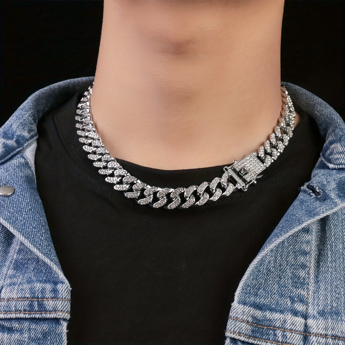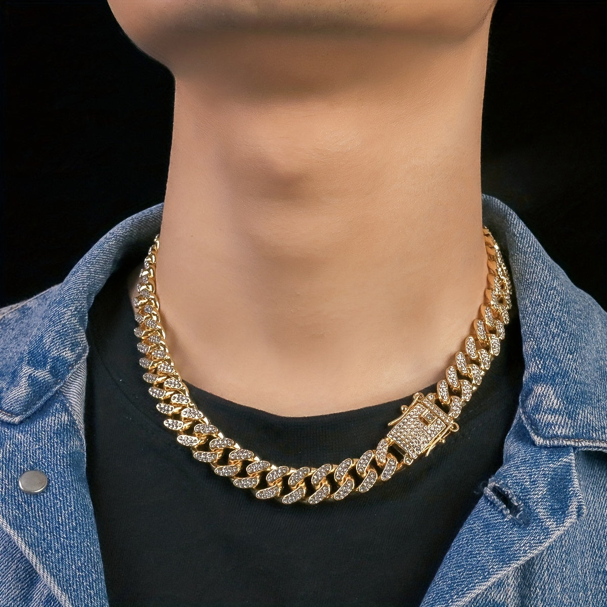 Men Necklace Bracelet Set Rhinestone Hip Hop Style Cuban Chain