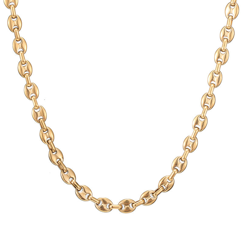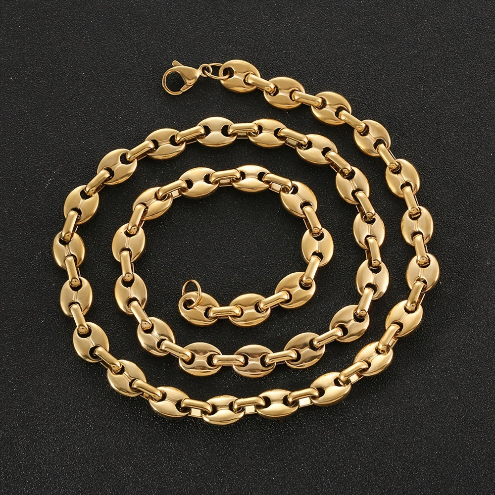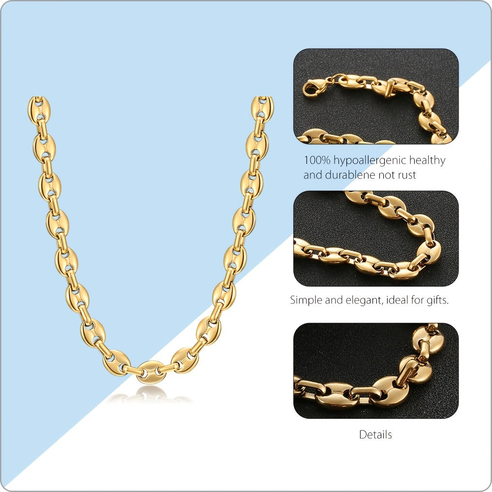 Enhance your style with this stainless steel coffee bean necklace featuring a golden steel finish. Perfect for coffee lovers!