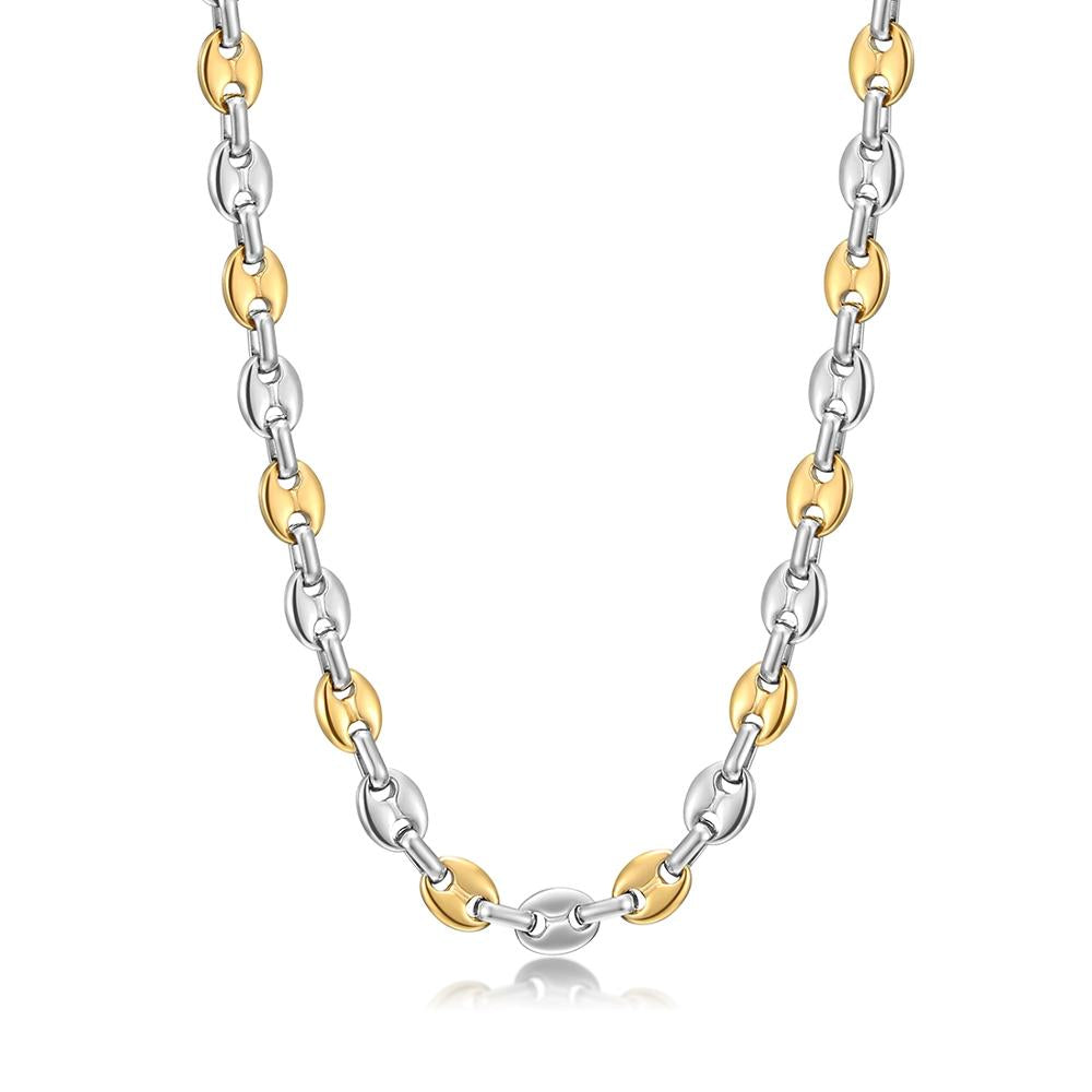 Men Stainless Steel Coffee Bean Necklace 22in Long Golden Steel