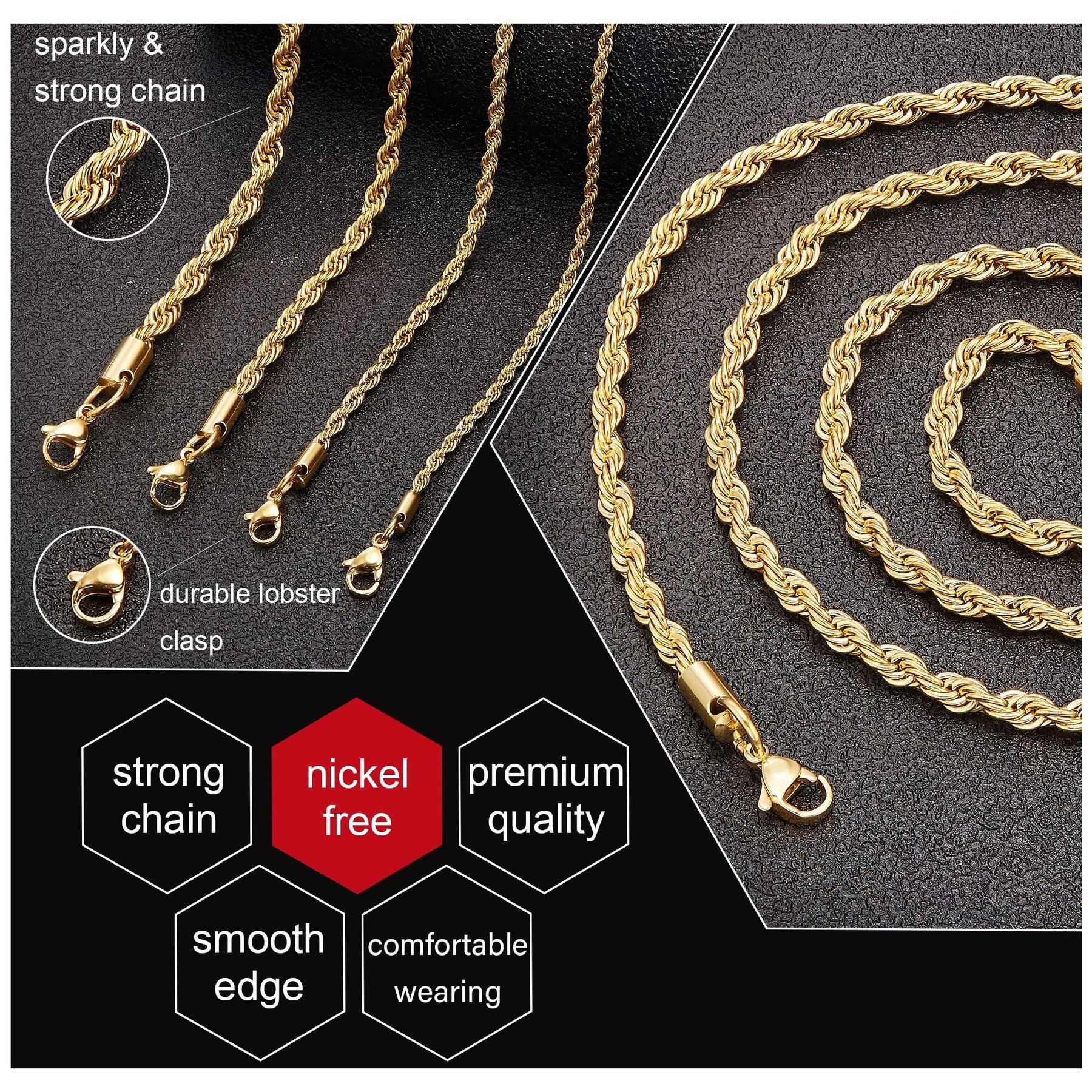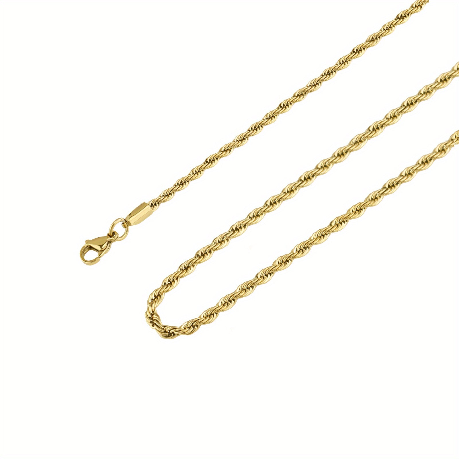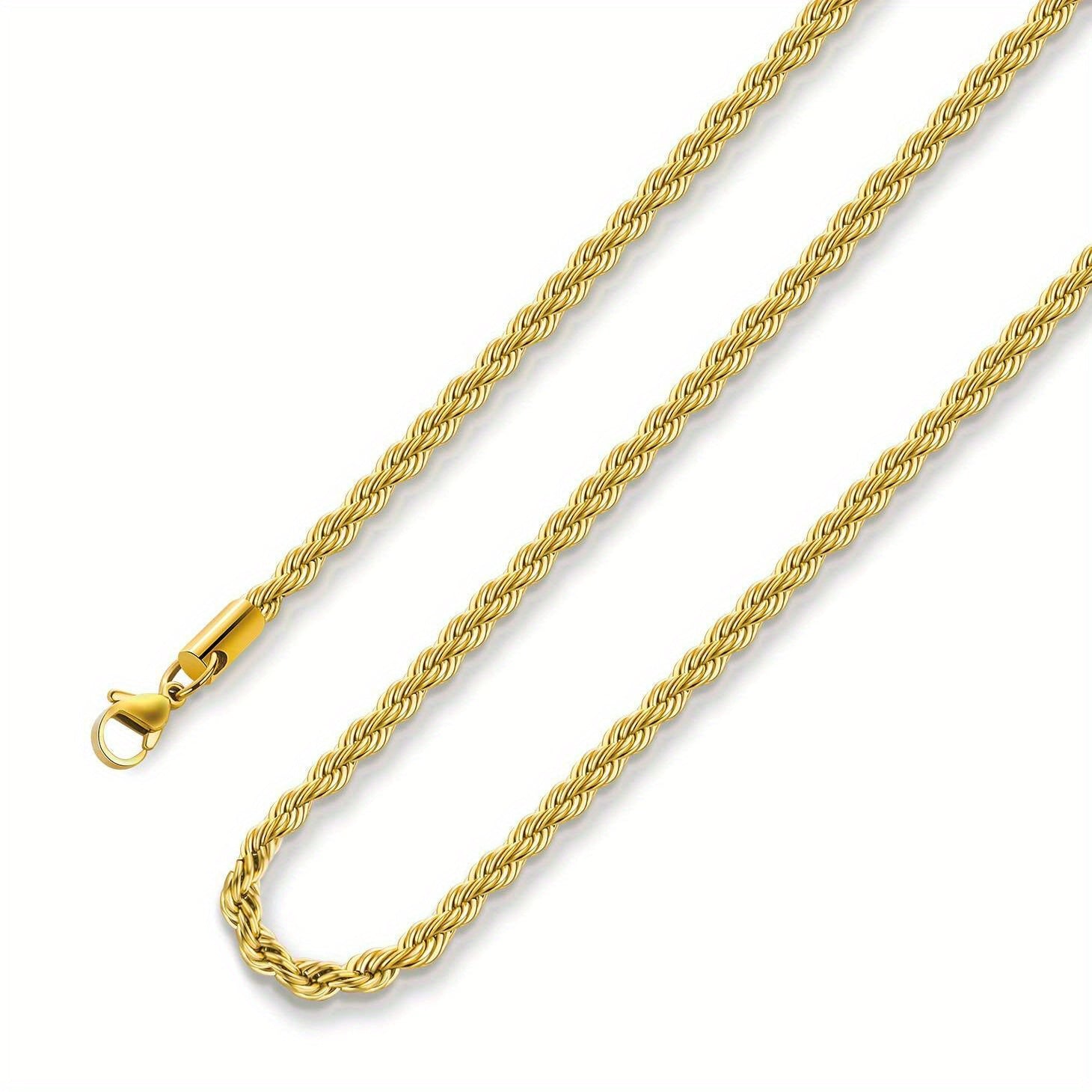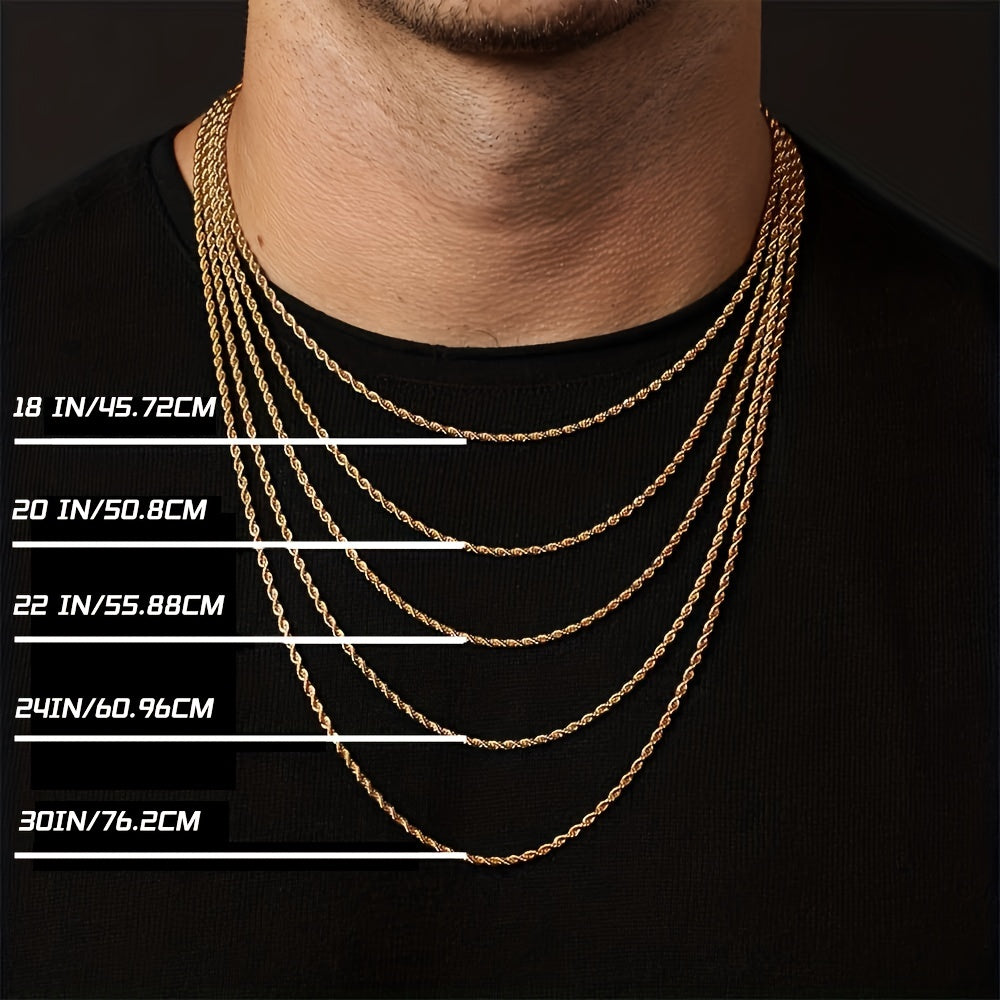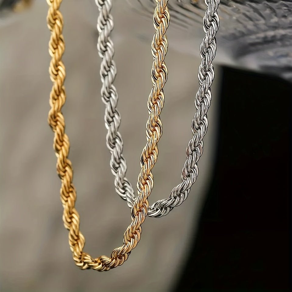 This men's necklace features a stainless steel golden chain with a silver rope design. Available in 35, 56, and 76 cm lengths, it is a versatile accessory for men, women, boys, and teens. Perfect as a gift for any occasion.