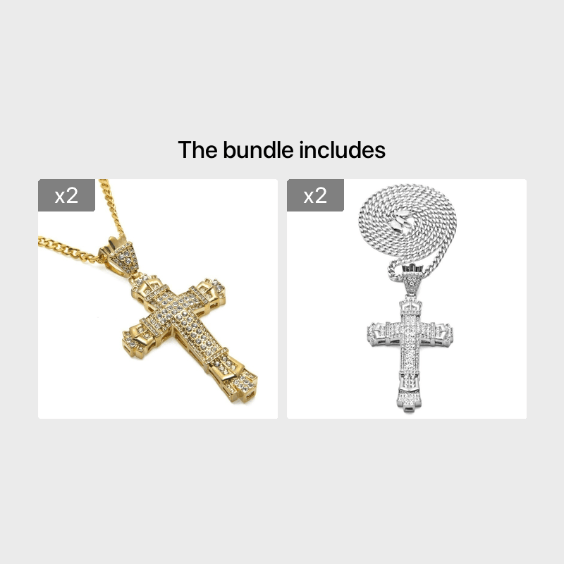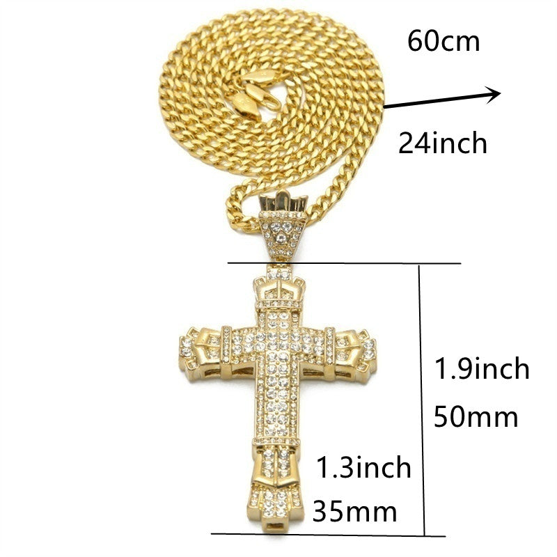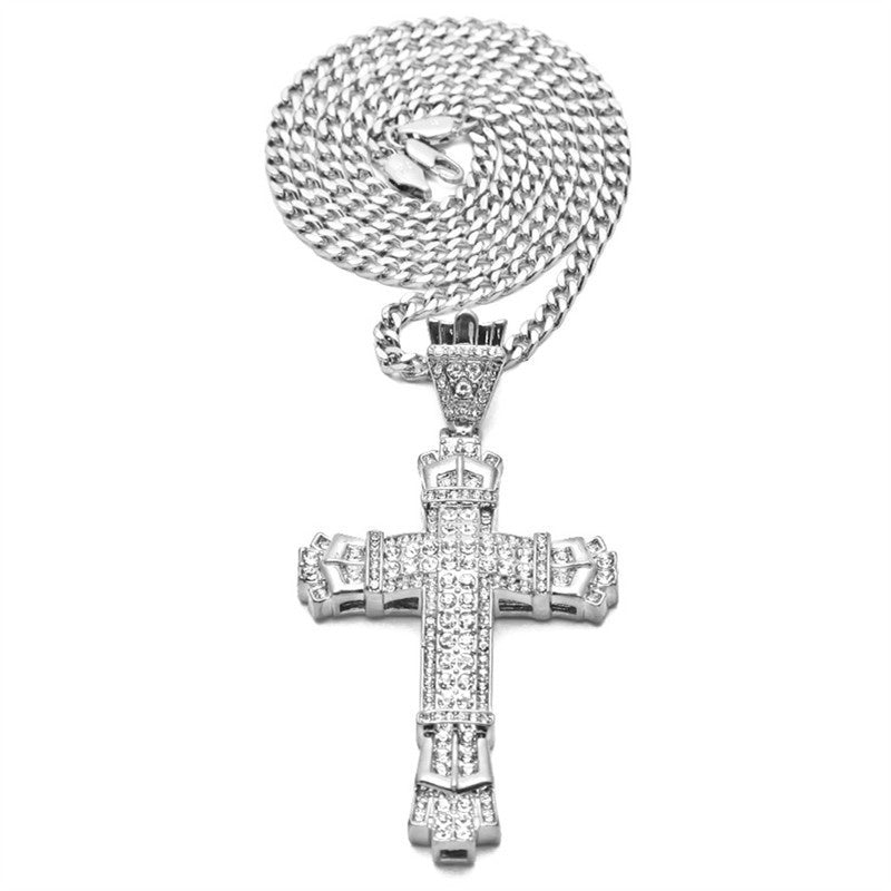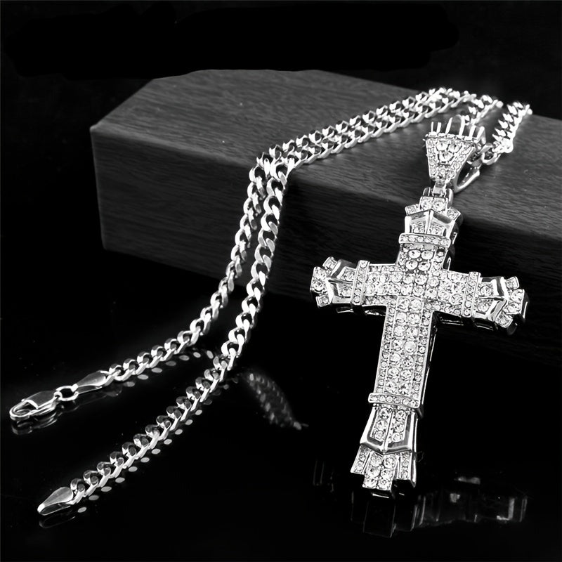 Elegant men's necklace featuring a cross pendant with rhinestones. Made of premium stainless steel for durability and style.