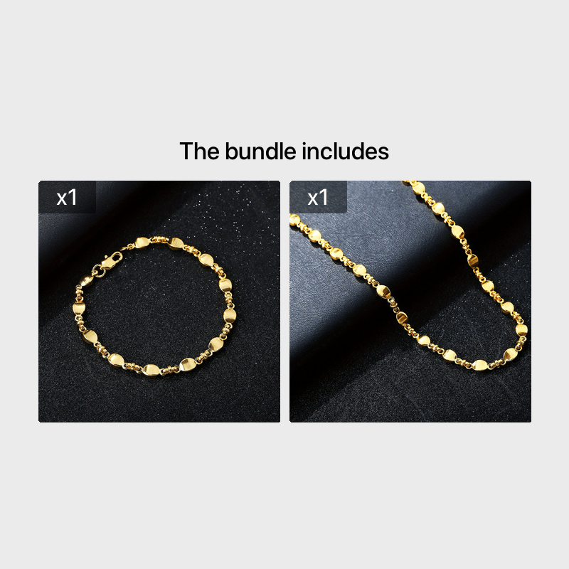 Elegant set featuring a men's bracelet and necklace made of 18K plated ingots.