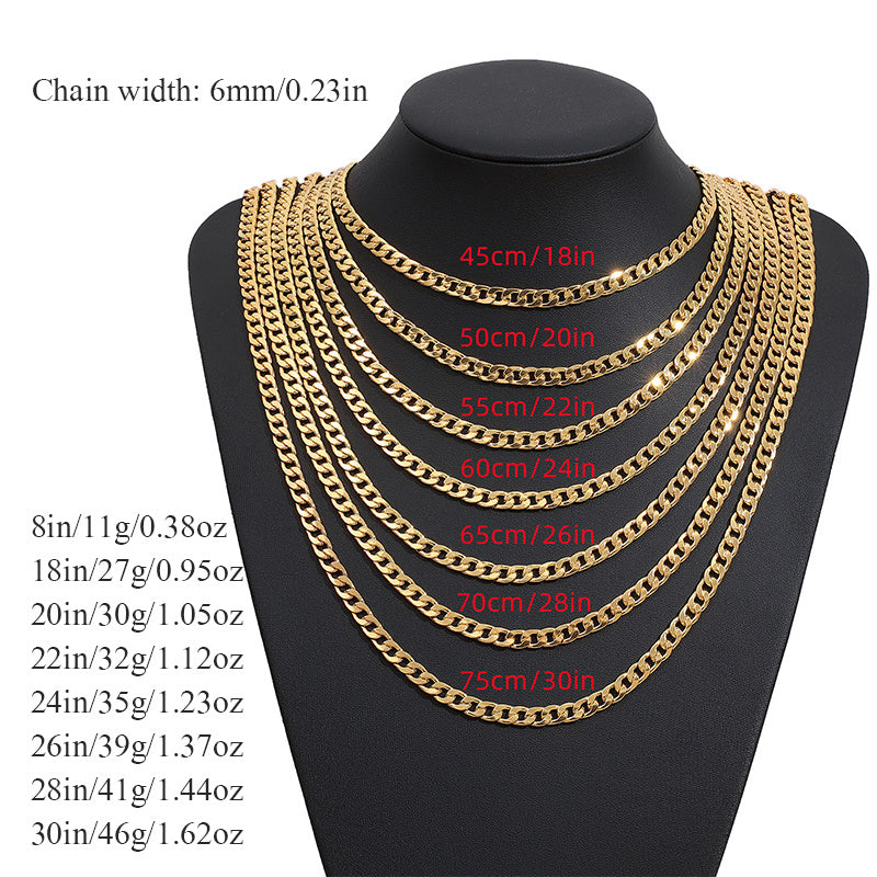 This set includes a 6mm chain necklace and an 8-inch bracelet, perfect for men and women. Made with fine craftsmanship and available in sizes ranging from 18 to 30 inches.