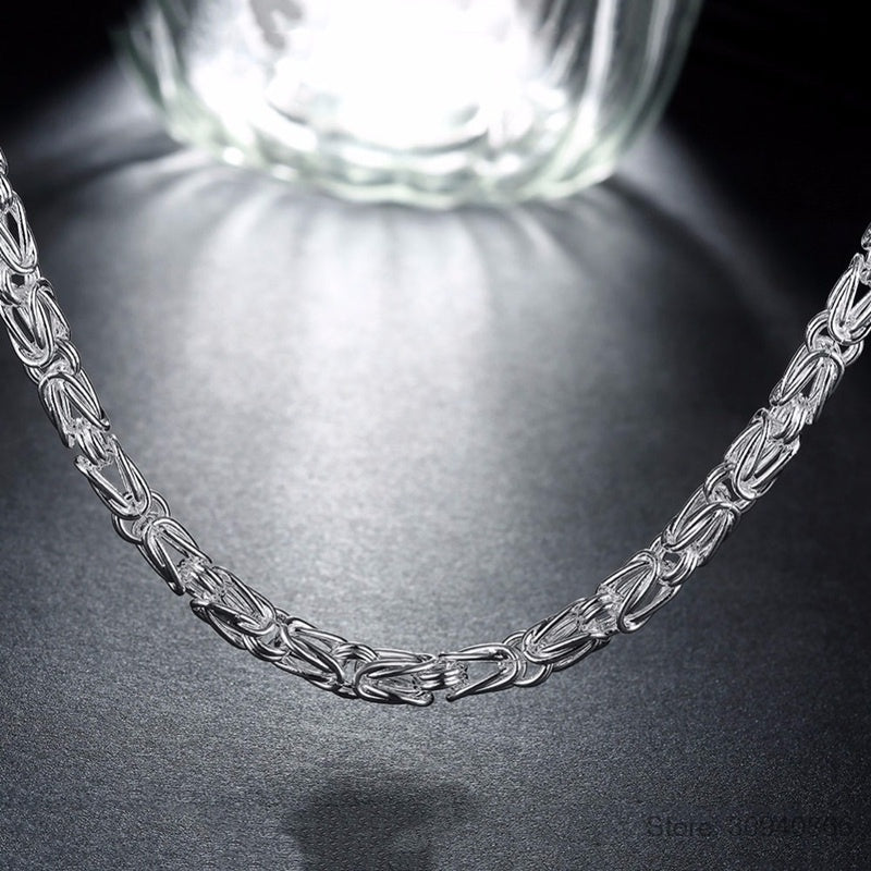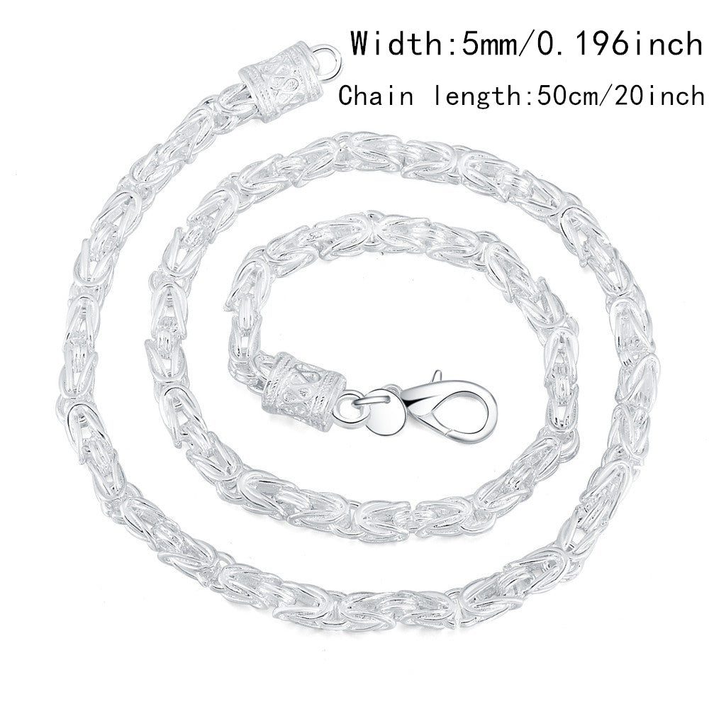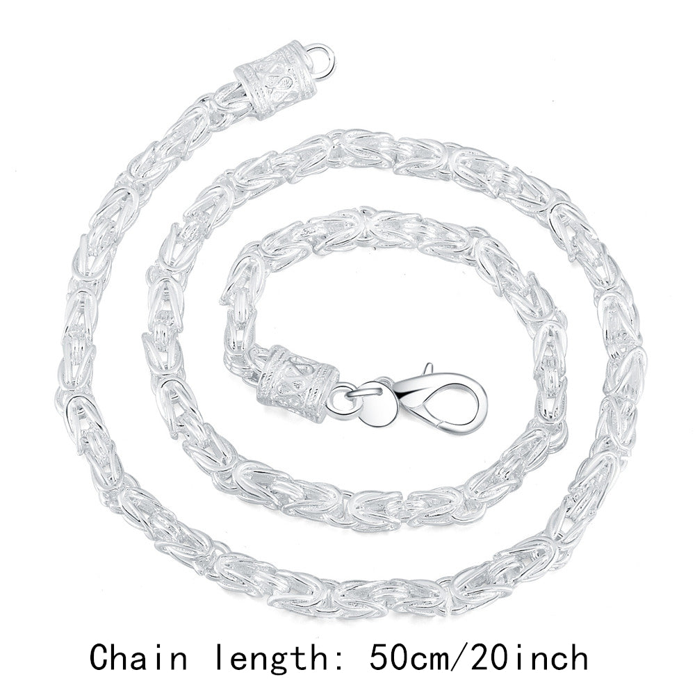 Elevate your style with this 5mm men's spigot chain necklace featuring a dragon design. Crafted from high-quality 925 silver plating, this necklace is perfect for everyday wear or special occasions.