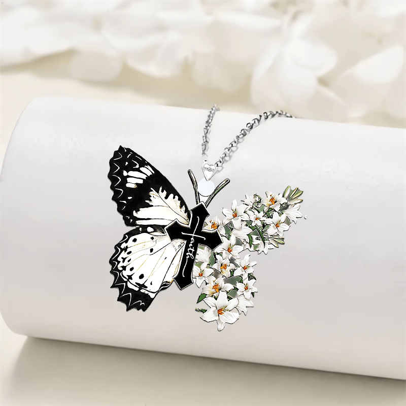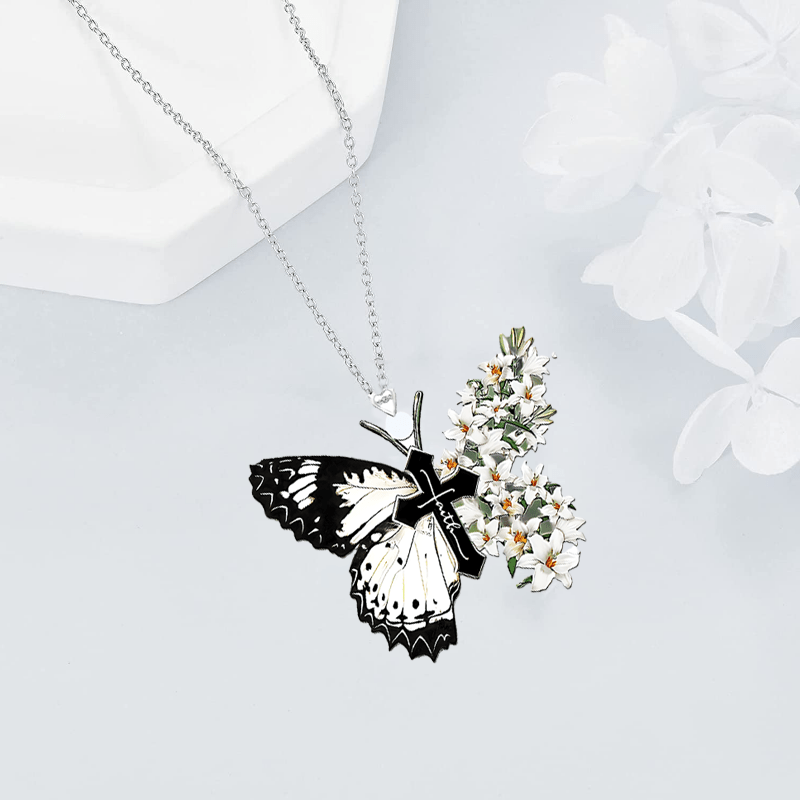 Add a touch of creativity to your ensemble with this acrylic pendant necklace featuring a butterfly design. Perfect for holiday parties and other special occasions.