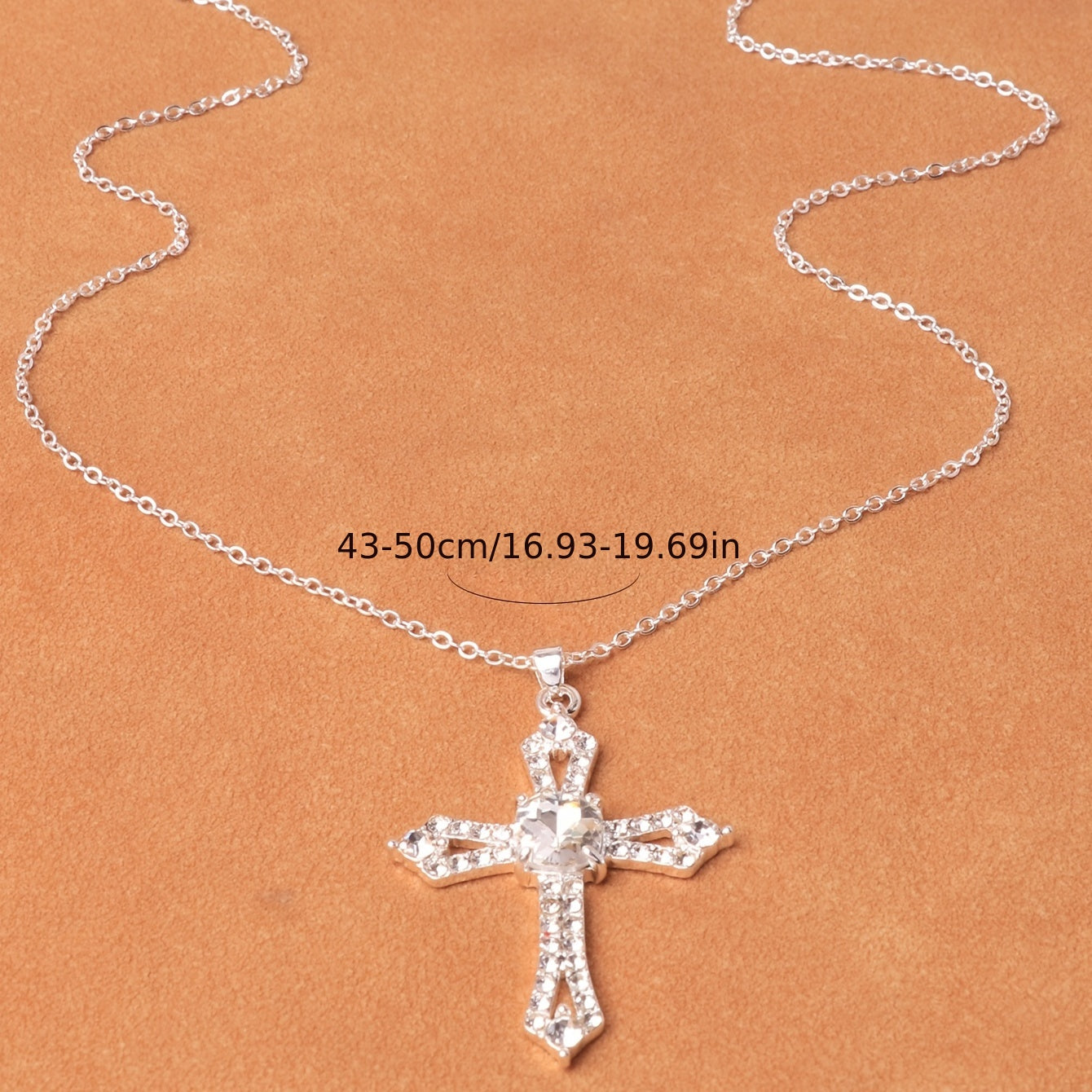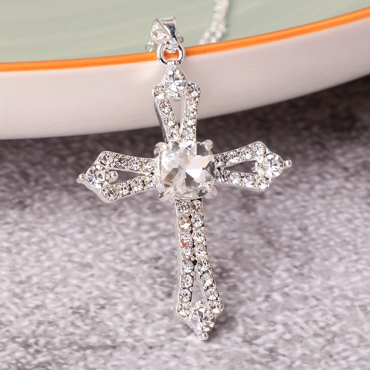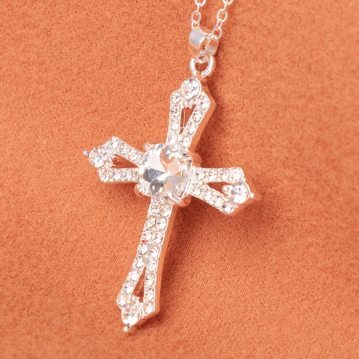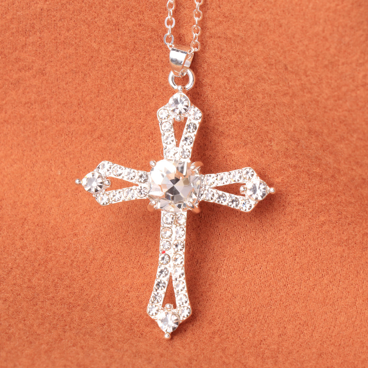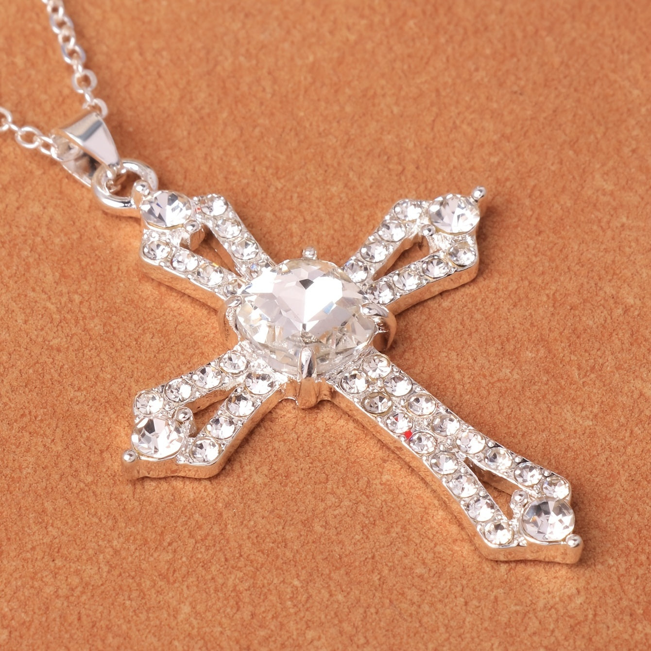 Enhance your style with this artificial diamond cross necklace featuring a silvery charm design.