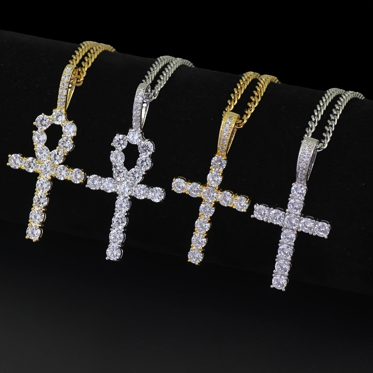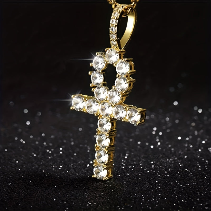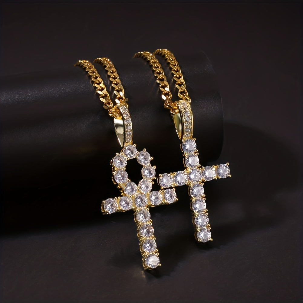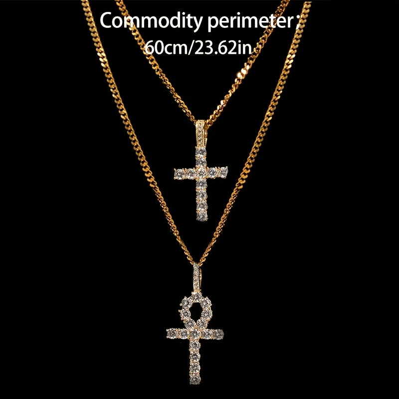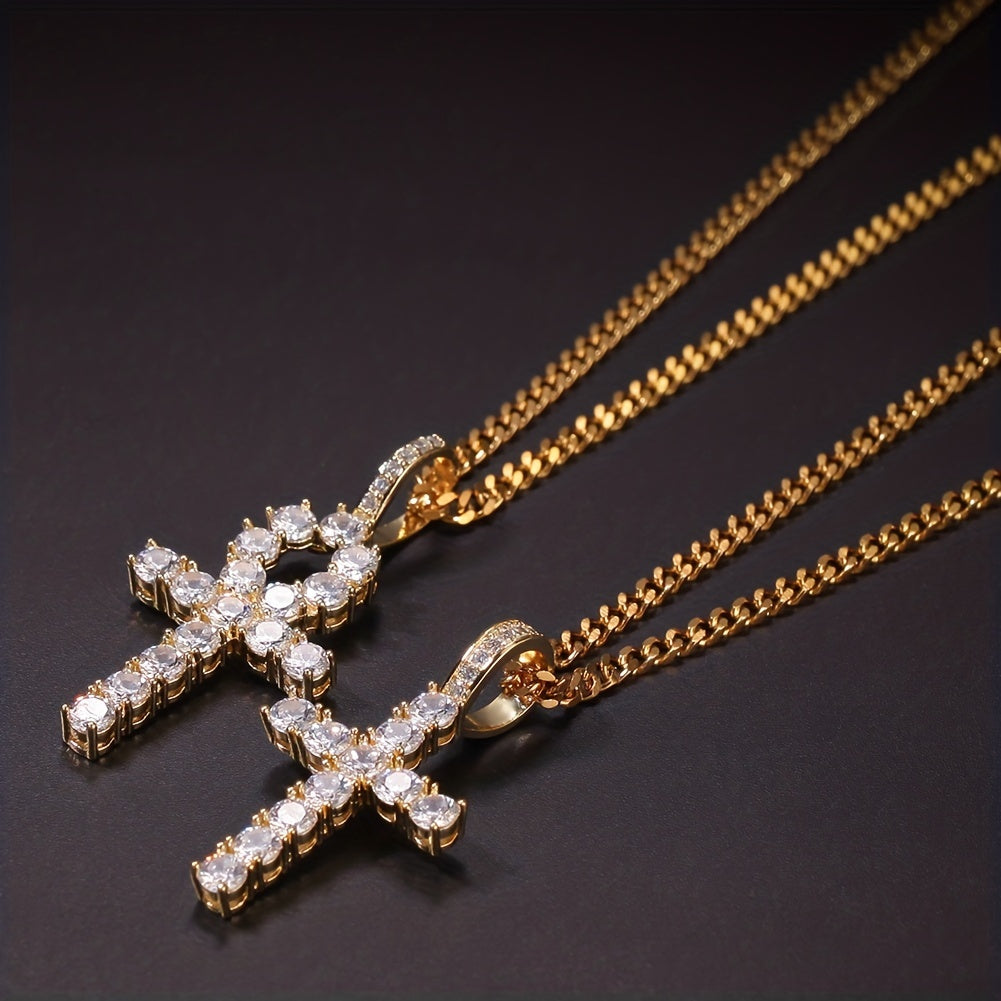 This hip hop pendant set features a cross with inlaid zircon stones. Perfect for couples who want a touch of European and American style. The design exudes nobility and elegance.