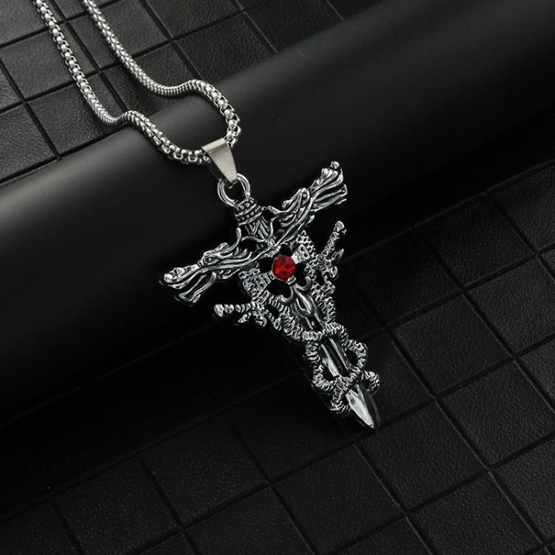 Men's Cross Pendant Crystal Necklace Hip hop Jewelry