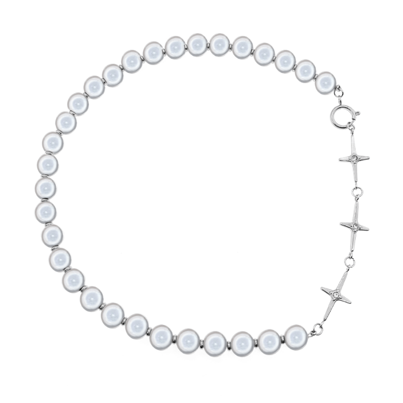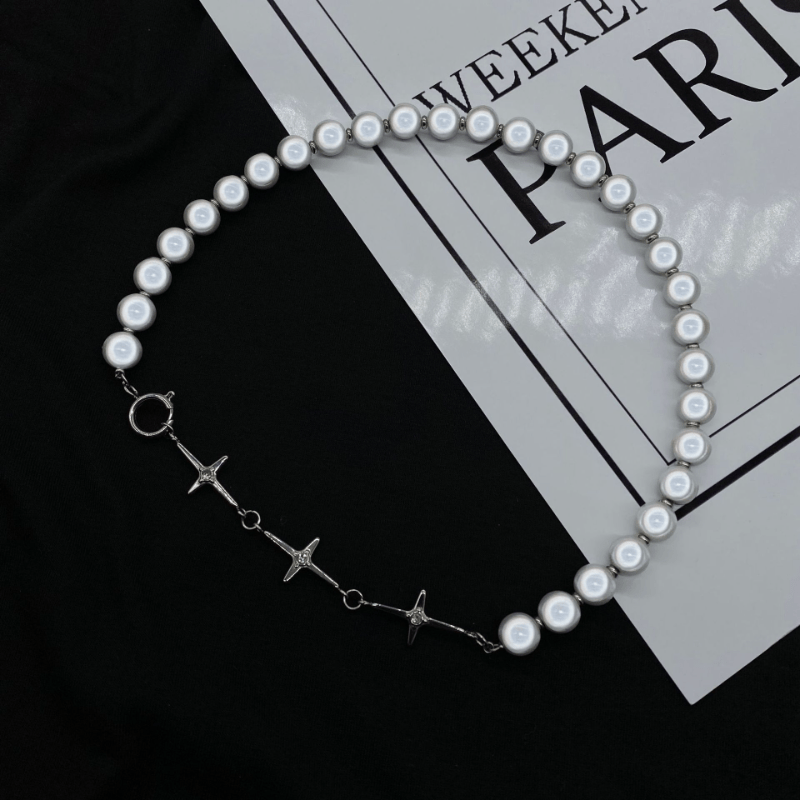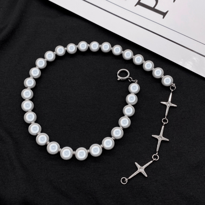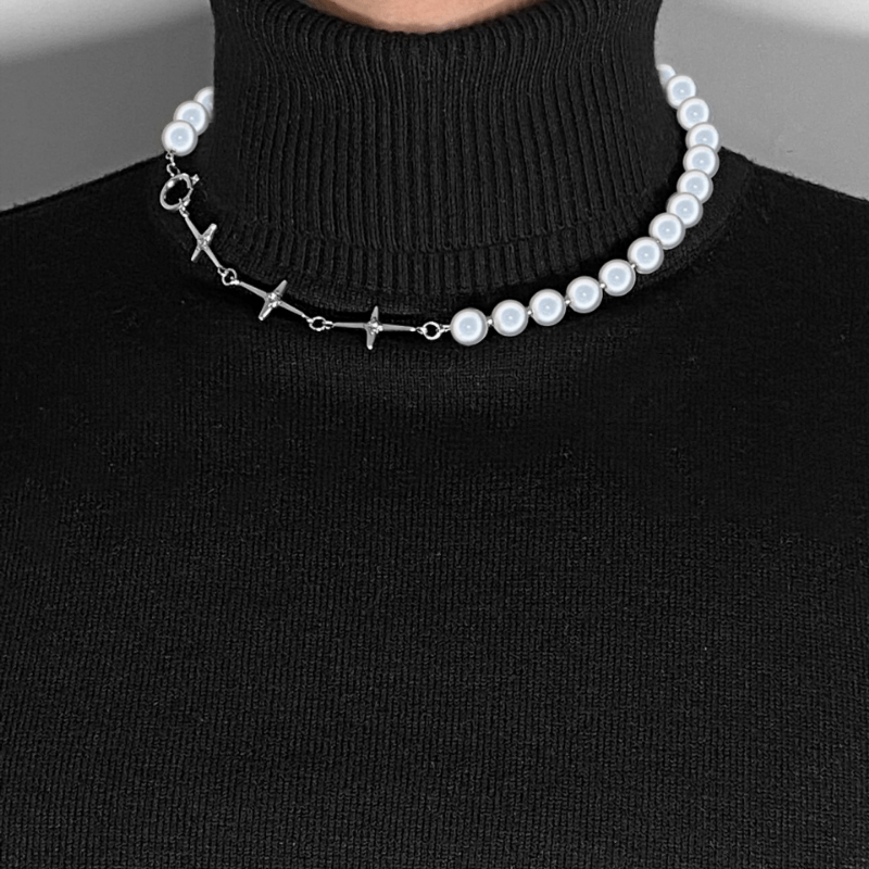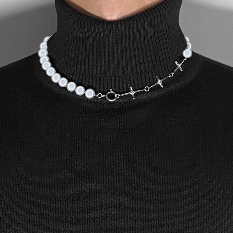 This stylish cross pendant necklace features beaded design with reflective pearl accents, a perfect gift for men, women, or friends on special occasions.