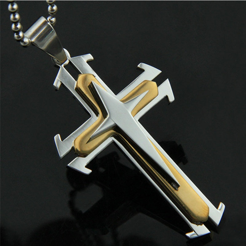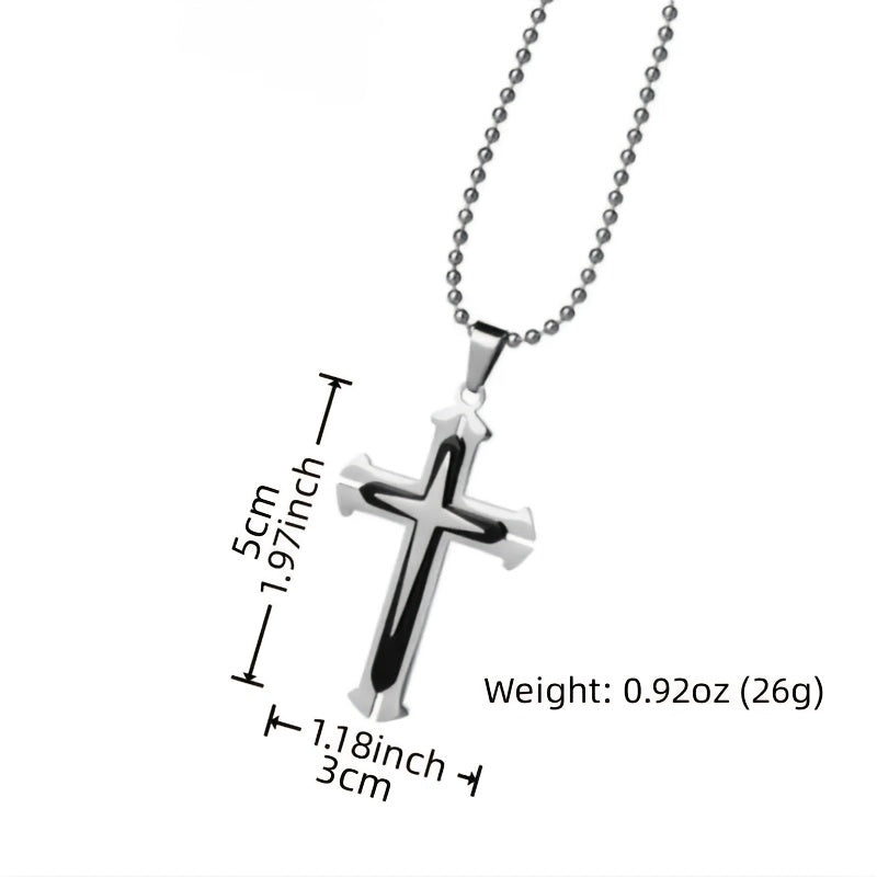 This men's cross pendant necklace is a stylish and meaningful piece of religious jewelry. It features a sleek design that can be worn for any occasion.