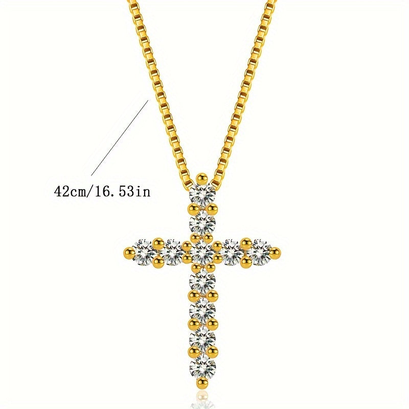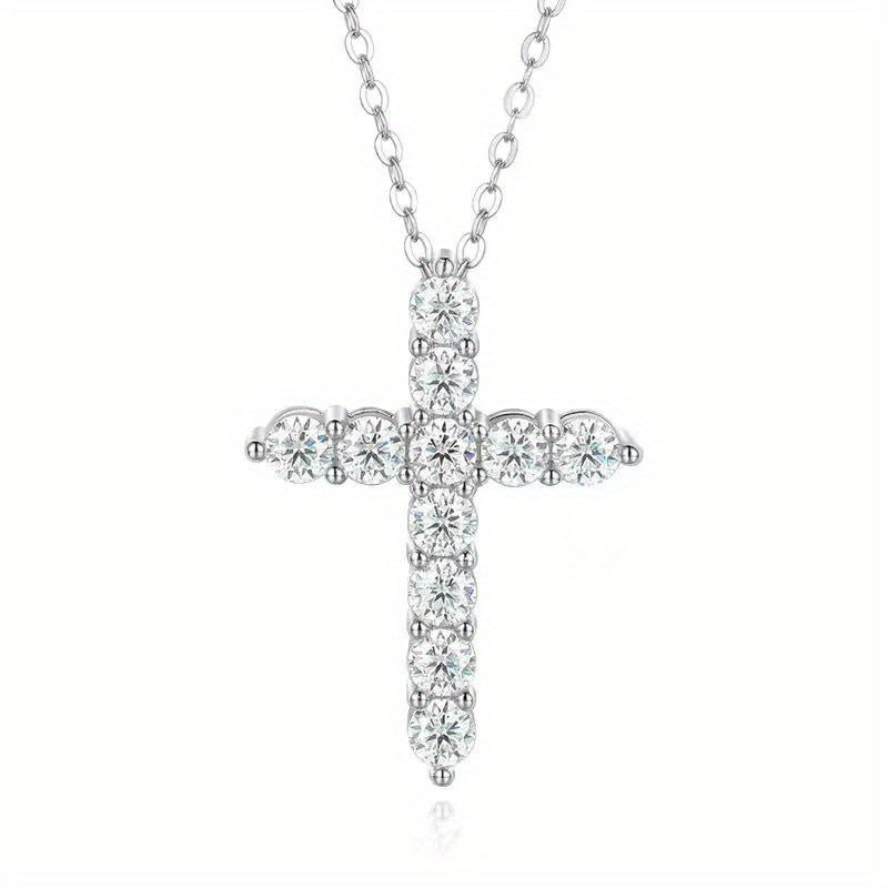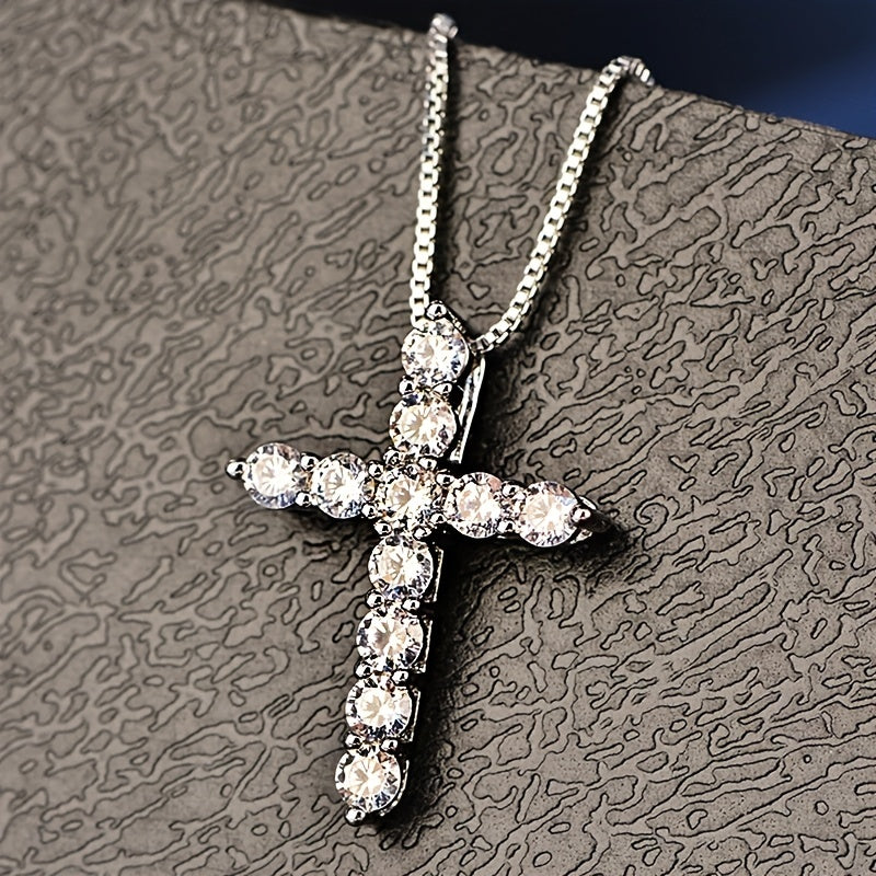 This pendant necklace features a full artificial diamond cross pendant on a clavicle chain, perfect for adding a touch of style to any outfit.