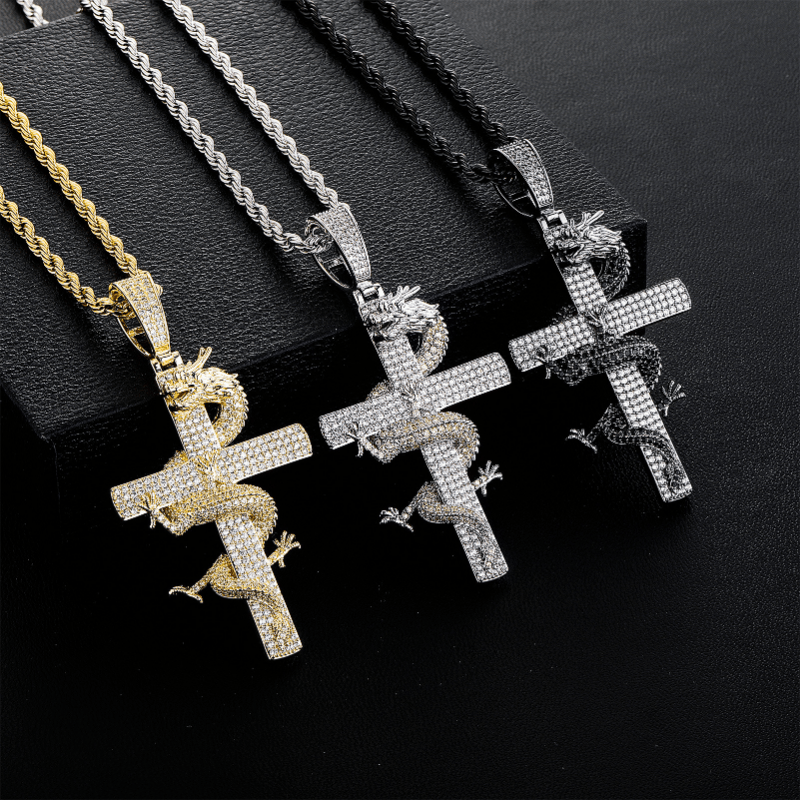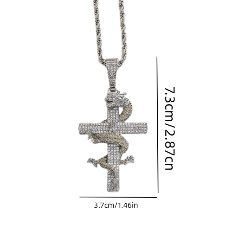 Men's Crystal Dragon Cross Pendant Necklace, Gift for Men/Women/Friends