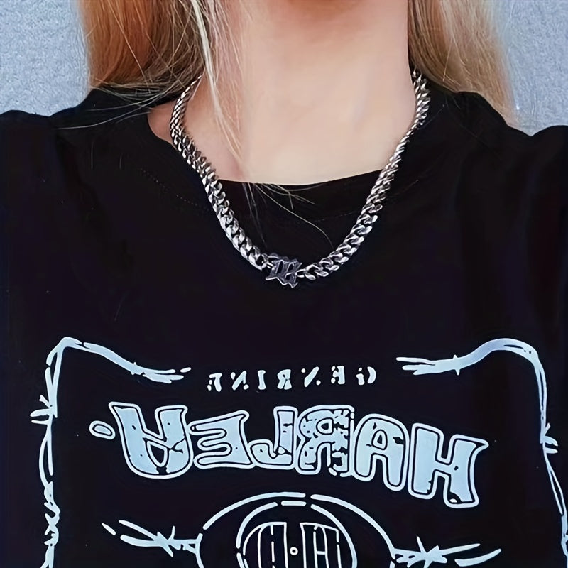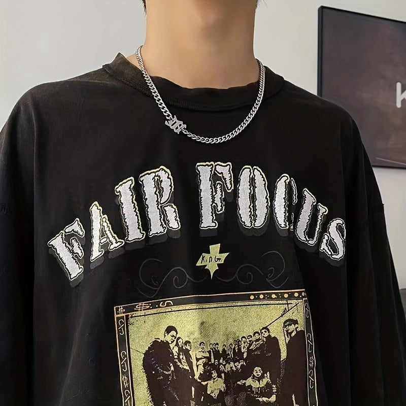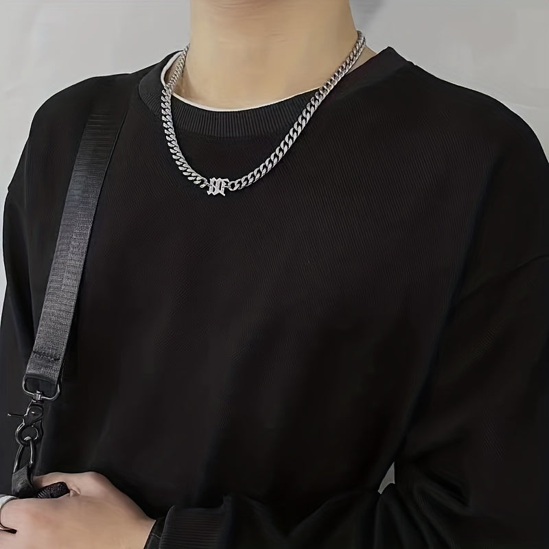 Upgrade your accessory game with this stylish hip hop Cuban chain necklace featuring a letter pendant.
