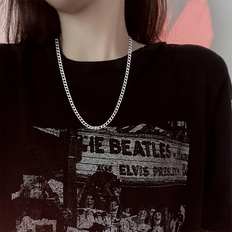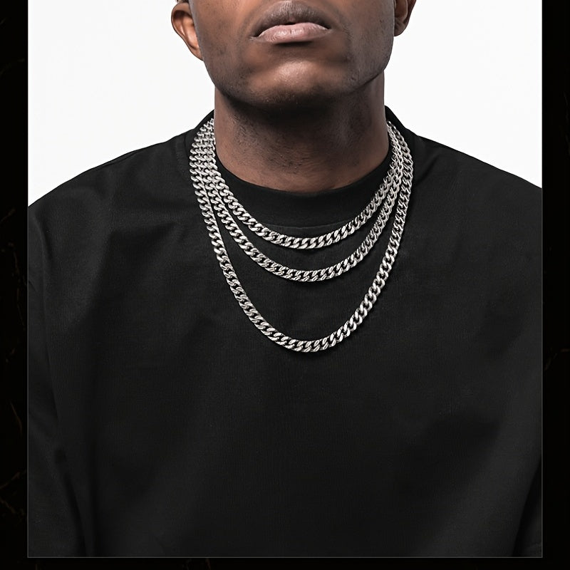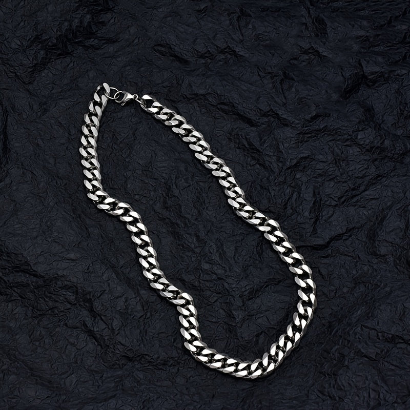 This men's Cuban chain necklace is made of durable stainless steel, featuring a silver finish. It is a solid metal collar chain that adds a stylish touch to your outfit.