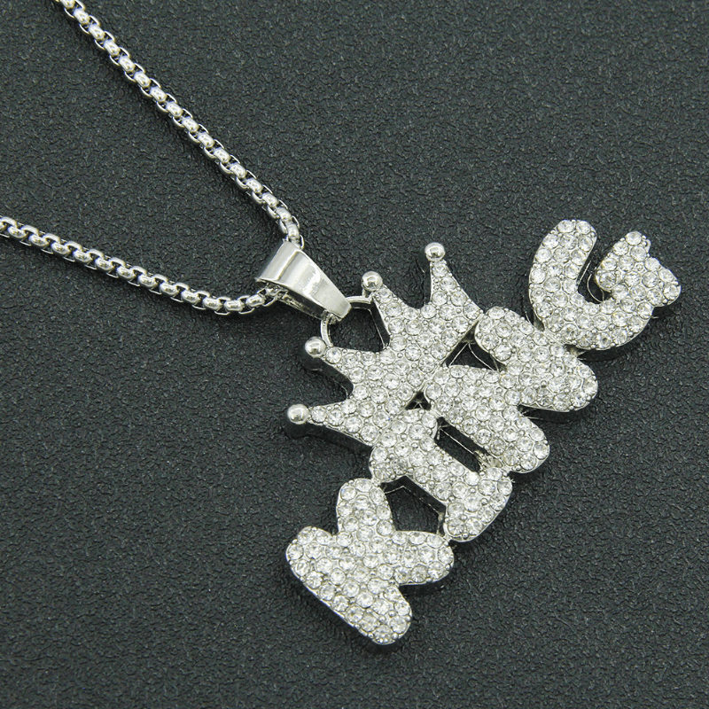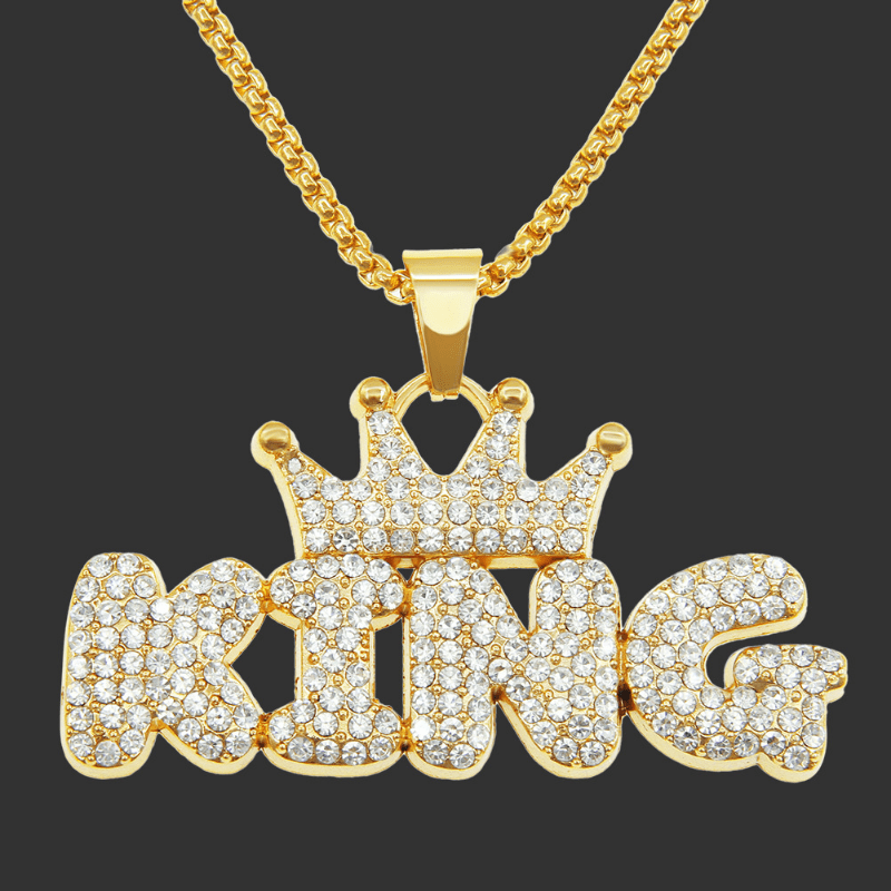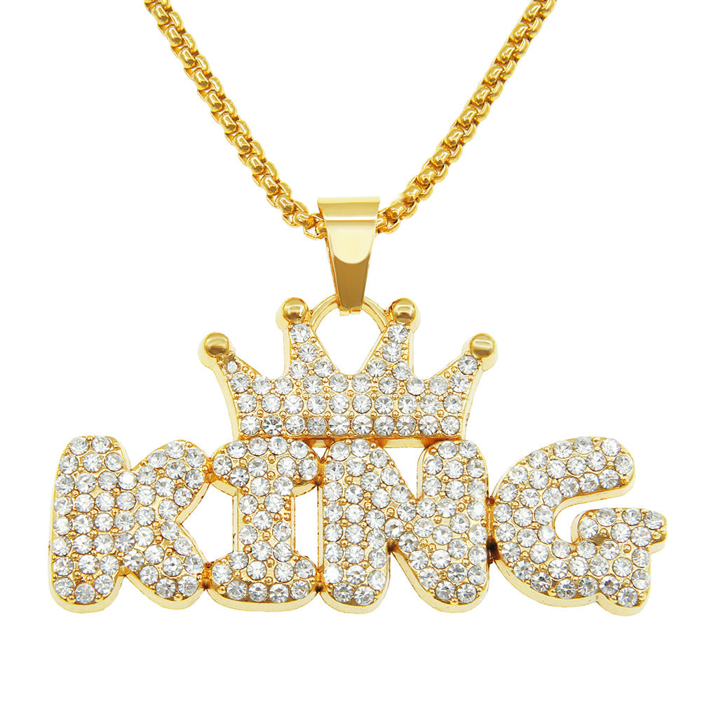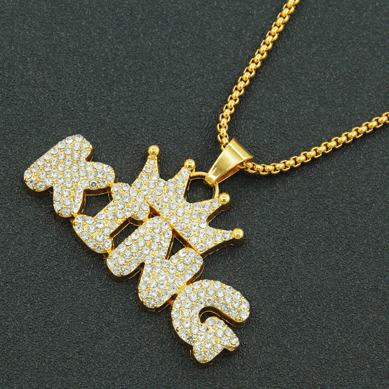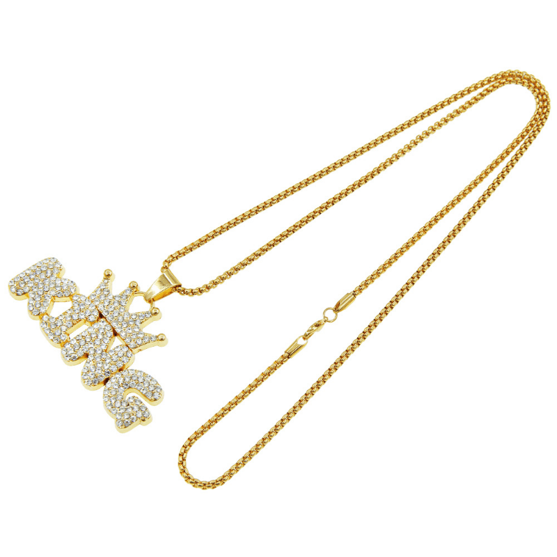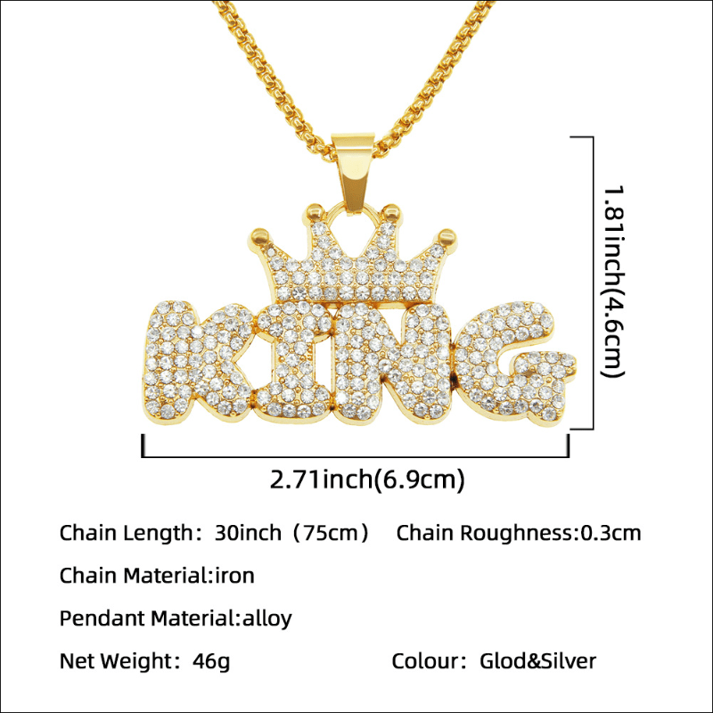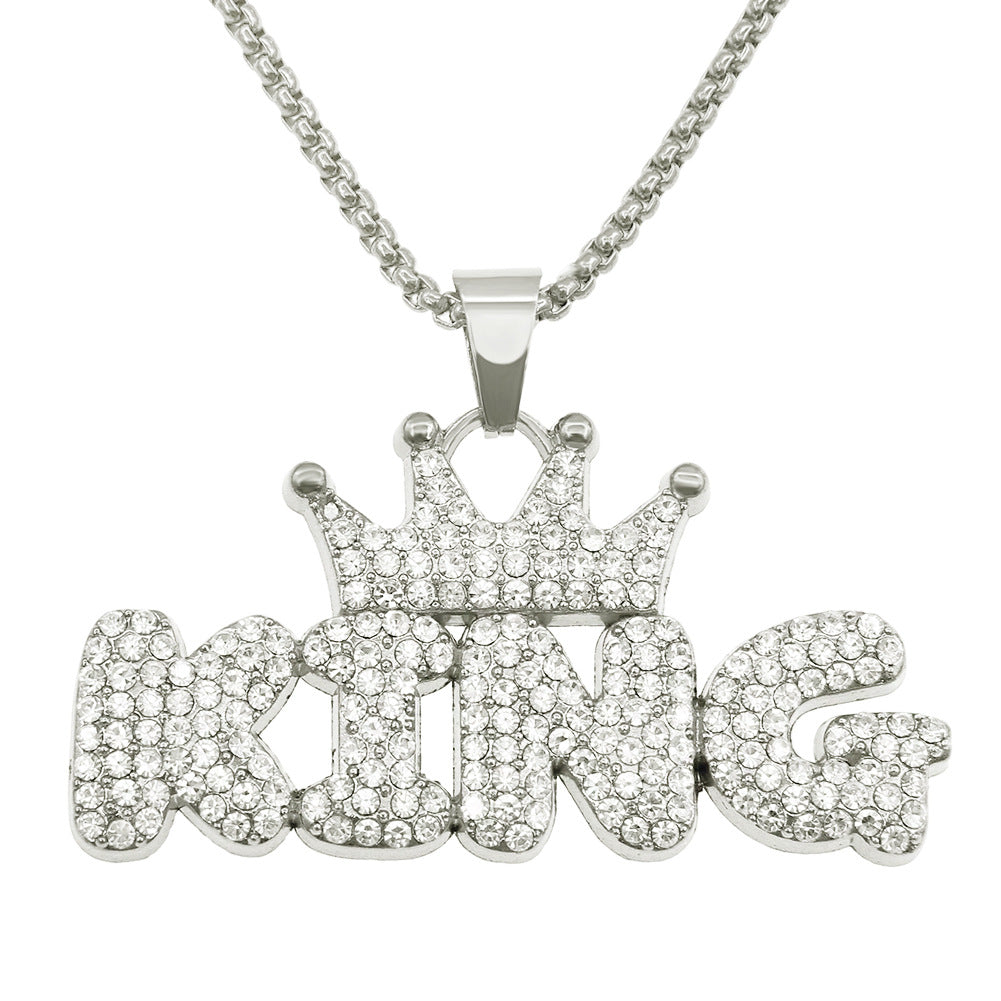 Add a touch of royalty to your style with this faux diamond-encrusted crown pendant necklace featuring a tag pendant. This sweatshirt-length necklace is perfect for men who want to make a bold statement.